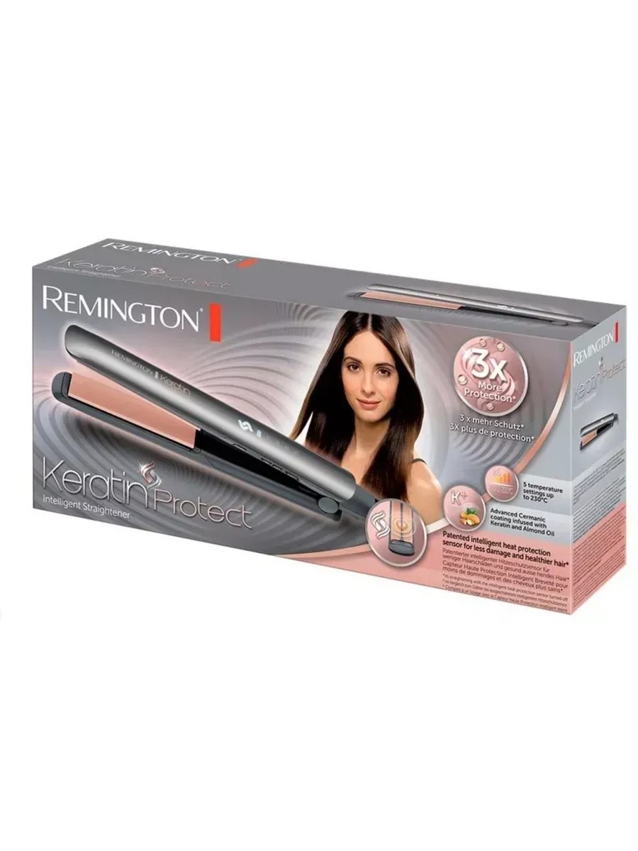 Выпрямитель Remington S8598 сохраняет здоровье волос и деликатно регулирует нагрев пластин. С ним вы получите стильную и модную причёску на красивых блестящих волосах без перегрева и пересушивания. здоровый блеск Керамические пластины с кератином и миндальным маслом деликатно выравнивают пряди и разглаживают структуру волоса. Воспользуйтесь пятипозиционным переключателем температур, чтобы подобрать щадящий режим для эффектной укладки любого типа волос. тепловая защита Выпрямитель оснащён запатентованным термодатчиком, который регулирует температуру нагрева пластин для защиты прядей Выбирайте один из пяти режимов работы, чтобы сохранить здоровый блеск волос. плавающие пластины Нагревательные пластины увеличенной площади дополнены плавающим механизмом, поэтому пряди не травмируются во время укладки. Всего 15 секунд требуется для прогрева, после чего прибор готов к работе.
