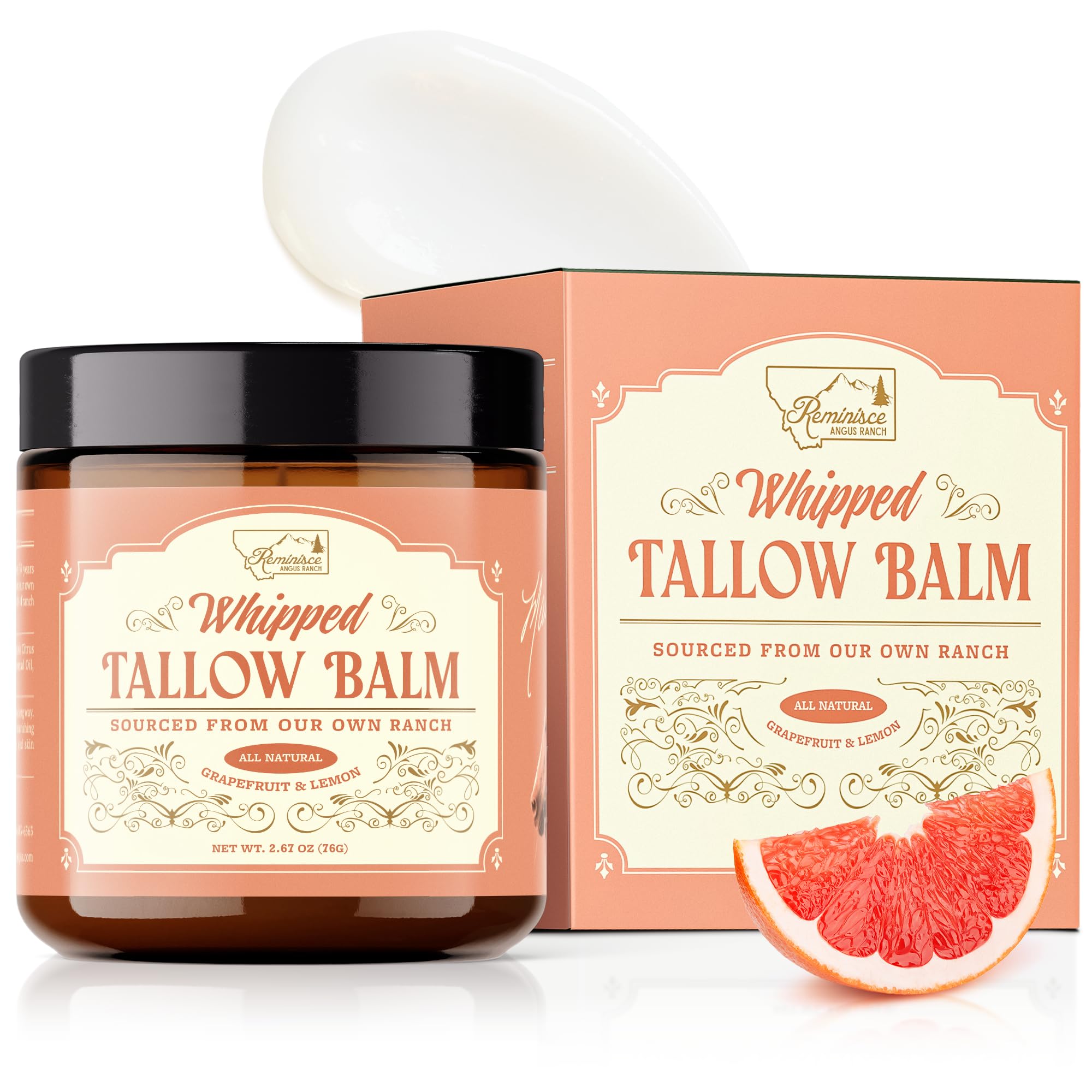 Montana Ranch Quality Promise: at the Reminisce Angus Ranch we focus on quality and sustainability at the same time. Our Made in the U.S.A. products are well known for their purity and consistency. Free from fillers, synthetics, and harsh additives, each jar reflects our commitment to responsible sourcing, craftsmanship, and timeless skincare traditions. Multi-Purpose Moisturizer for Everyday Skincare: Versatile tallow balm as facial moisturizer, for lips, hands, elbows, cuticles, and dry patches. Perfect for daily use at home or on the go, replacing multiple products with one effective, nourishing whipped cream moisturizer. Nourishing, Quick Absorption: Carefully whipped to create a smooth, airy balm that melts into skin on contact like tallow lotion. Absorbs fast, spreads easily, and leaves your skin soft and hydrated without a greasy or heavy feel. USA Made 100 Grass Fed Beef Tallow: simple, clean ingredients. Our high-quality beef tallow for skin and face care is sourced directly from our Montana ranch. Blended with Organic jojoba oil, mango seed butter and manuka honey we arrive at this unparalleled skin care beef tallow and honey balm for face, designed for those seeking beauty and healthy skin. Deep, Natural Face Body Hydration: Premium whipped tallow balm delivers rich, long-lasting moisture for dry, sensitive, or compromised skin. Ideal as a daily beef tallow face moisturizer or all-over body cream, helping to soften, nourish, and support a healthy skin barrier without clogging pores.