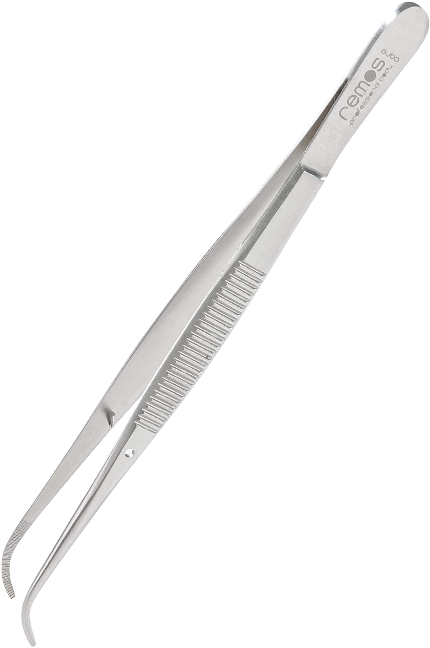 Curved tweezers with guide pin made of stainless steel 15 cm