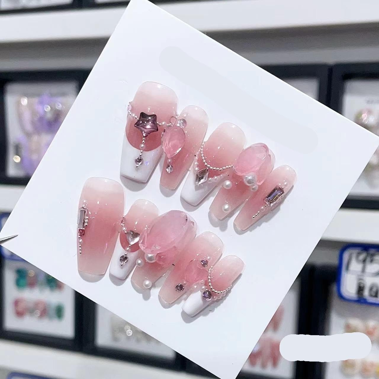 Removable and wearable nail art French Almond Ombre Handmade Press On Nails Long Acrylic False Nail Tips InNail (Color : 29179 Size : S)