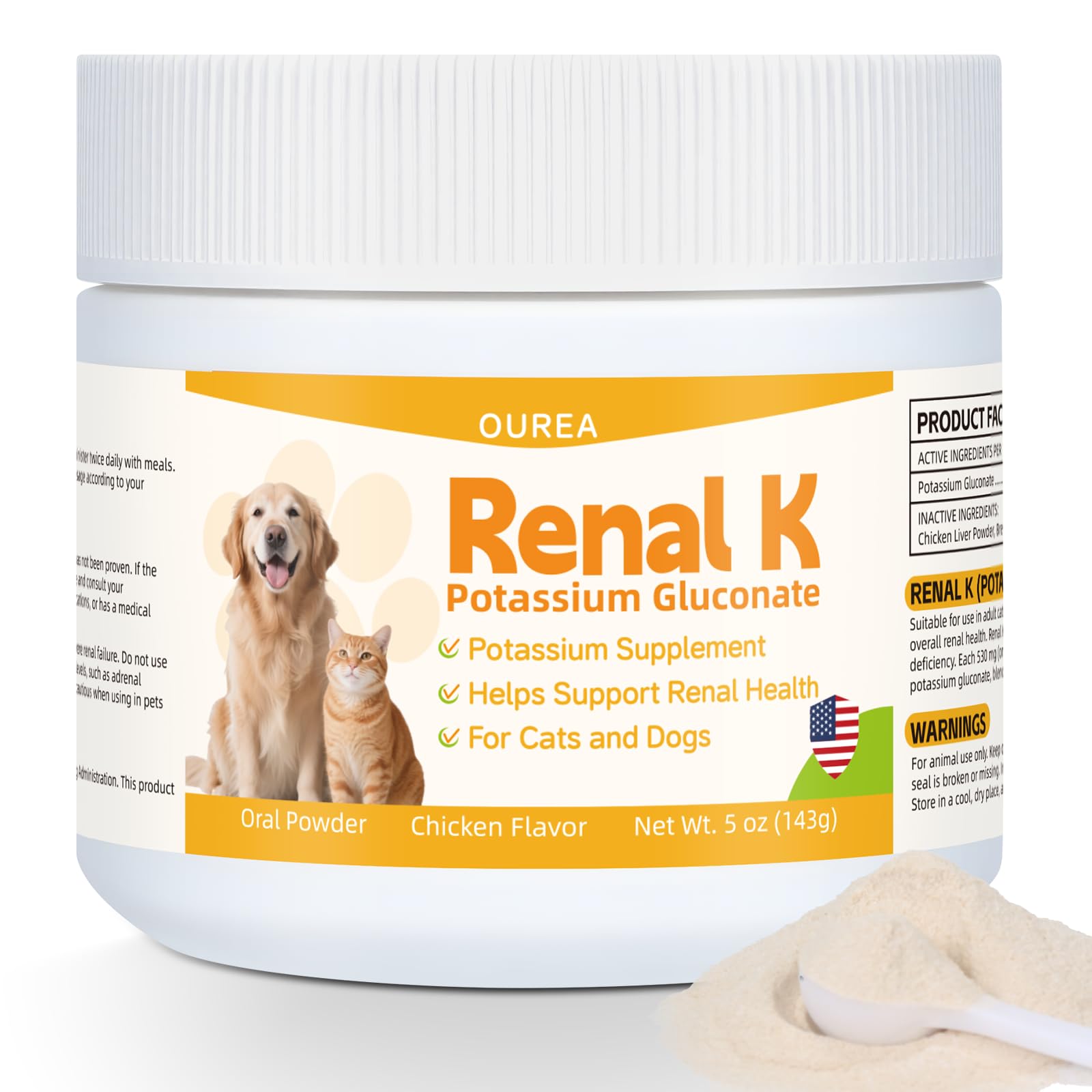 Renal K Potassium Gluconate for Dogs & Cats 2.2 mEq per Scoop Supports Kidney Function Restores Potassium Levels Boosts Energy Muscle Strength Vet-Recommended