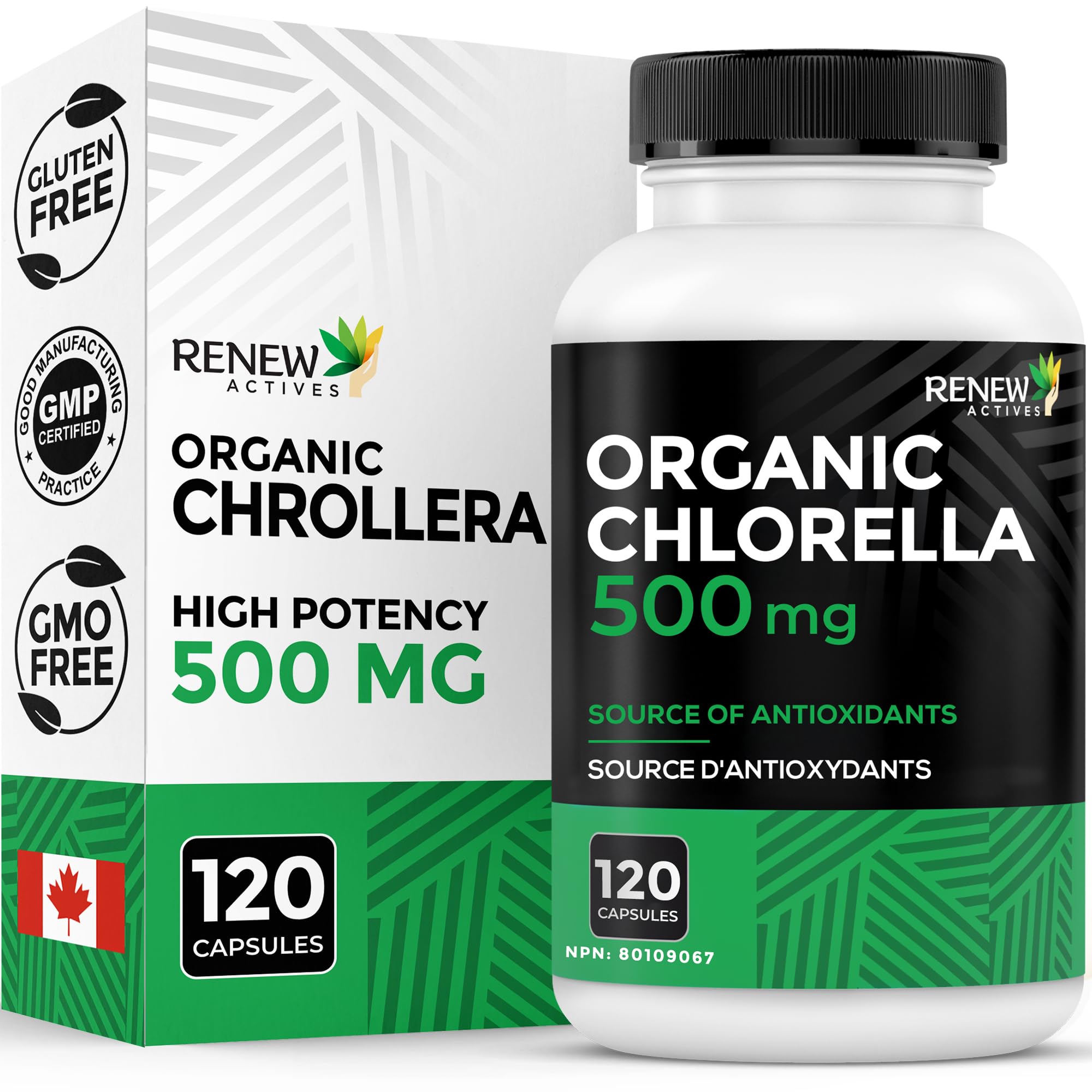 Renew Actives Chlorella Capsules 1000MG per 2 Capsules - Rich in Antioxidants & Nutrients - Natural Source for Cellular Health, Vitality, & Wellness - Made in Canada - 120 Capsules