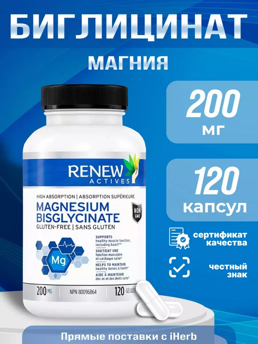 Магния бисглицинат 200мг в упаковке из 120 капсул от Renew Actives — это высокоэффективная добавка, которая поддерживает здоровье сердца, кровеносных сосудов, мозга и костей. Этот продукт содержит магний в форме бисглицината, что обеспечивает его лучшее усвоение организмом. Магний играет ключевую роль в поддержании нормального уровня сахара в крови и является важным минералом для электрической активности сердца. Он способствует расслаблению гладких мышц и расширению кровеносных сосудов, что помогает поддерживать нормальное кровяное давление. Бисглицинат магния также известен своими успокаивающими свойствами. Он может способствовать улучшению сна благодаря своему мягкому воздействию на нервную систему. Это делает его идеальным выбором для тех, кто ищет натуральный способ улучшить качество ночного отдыха и просыпаться бодрым и полным энергии. Добавка с глицинатом магния полезна не только для сна; она также помогает поддерживать мышечную массу и спокойствие ума. Магний участвует в выработке клеточной энергии и обмене веществ, а также необходим для сокращения мышц и передачи нервных импульсов. Каждая капсула содержит 200 мг магния из 2000 мг бисглицината магния (TRAACS), что делает этот БАД эффективным средством поддержки вашего организма на клеточном уровне. В составе продукта используются только натуральные ингредиенты: растительная целлюлоза (капсула), рисовая мука и диоксид кремния. Этот продукт идеально подходит тем, кто стремится к здоровому образу жизни без использования синтетических компонентов. Натуральный состав добавки обеспечивает её безопасность при регулярном применении.