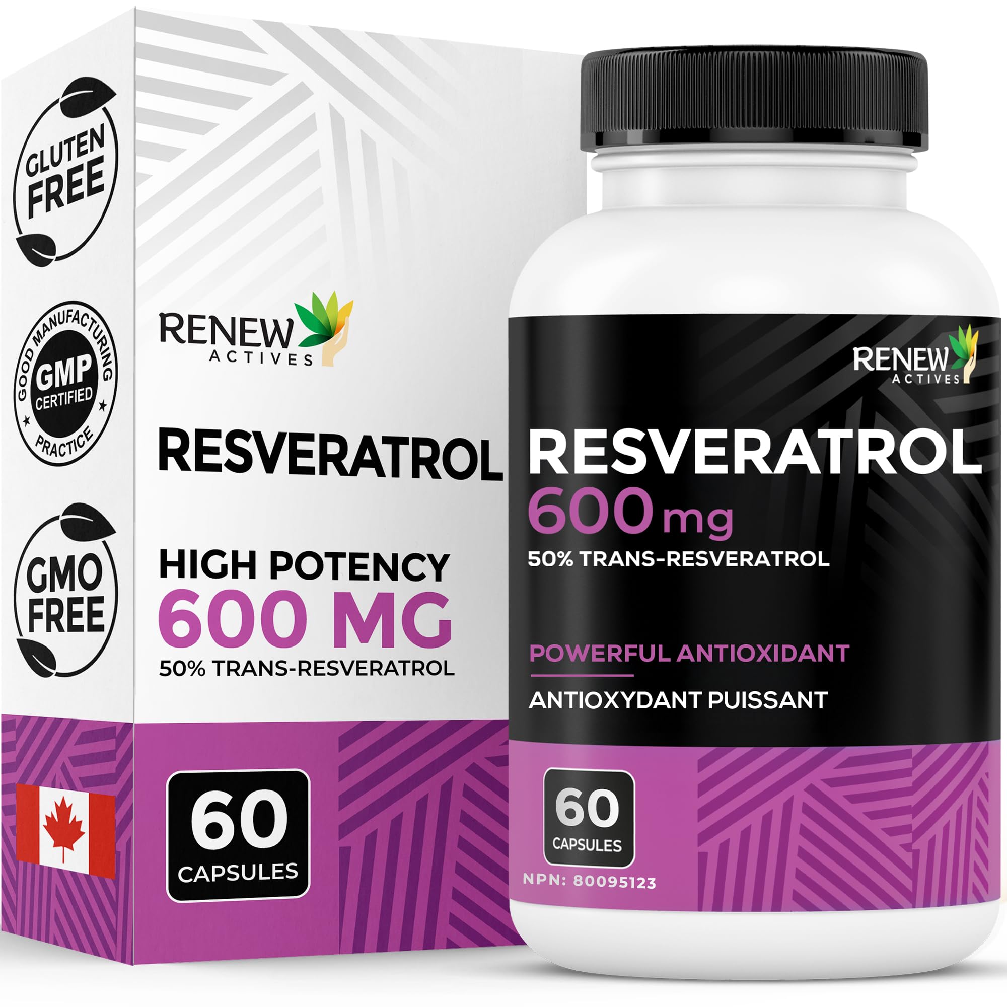 Renew Actives Resveratrol Supplement 600mg per Serving - High-Potency Antioxidant Complex with 50% Trans-Resveratrol Supports Cellular Health & Longevity - Made in Canada 60 Vegan Capsules