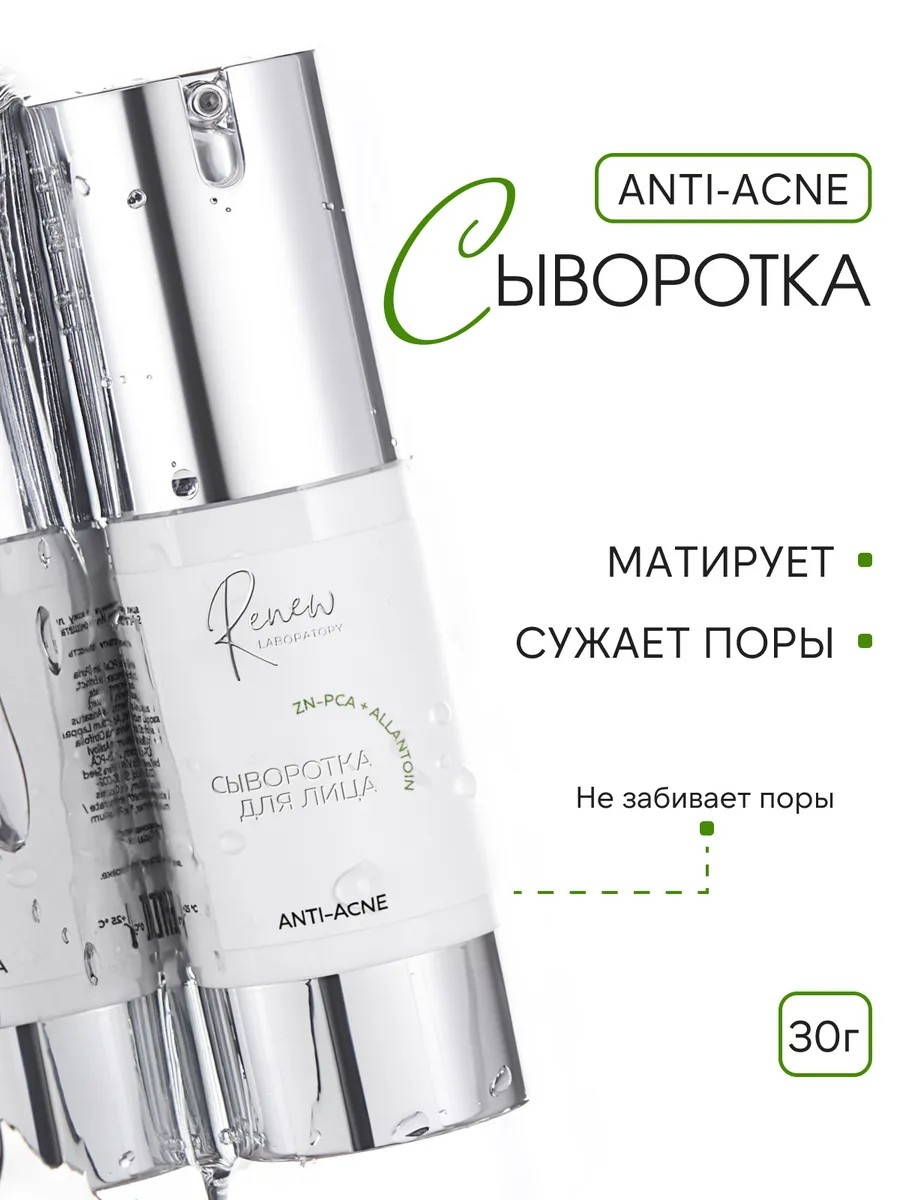 Сыворотка anti-acne, торговой марки RENEW LABORATORY — это концентрированное средство интенсивного действия, направленное на глубокую борьбу с акне, подавление воспалений, ускорение регенерации кожи и предотвращение постакне. Она дополняет базовый уход, усиливая эффективность тонера и крема за счет высокой концентрации активных компонентов. Быстрое действие, профилактика рубцов, матирование и сужение пор. Сочетается с большинством средств для проблемной кожи. Результат при регулярном применении: сокращение количества воспалений, осветление следов постакне, сужение пор, выравнивание текстуры и тона кожи.