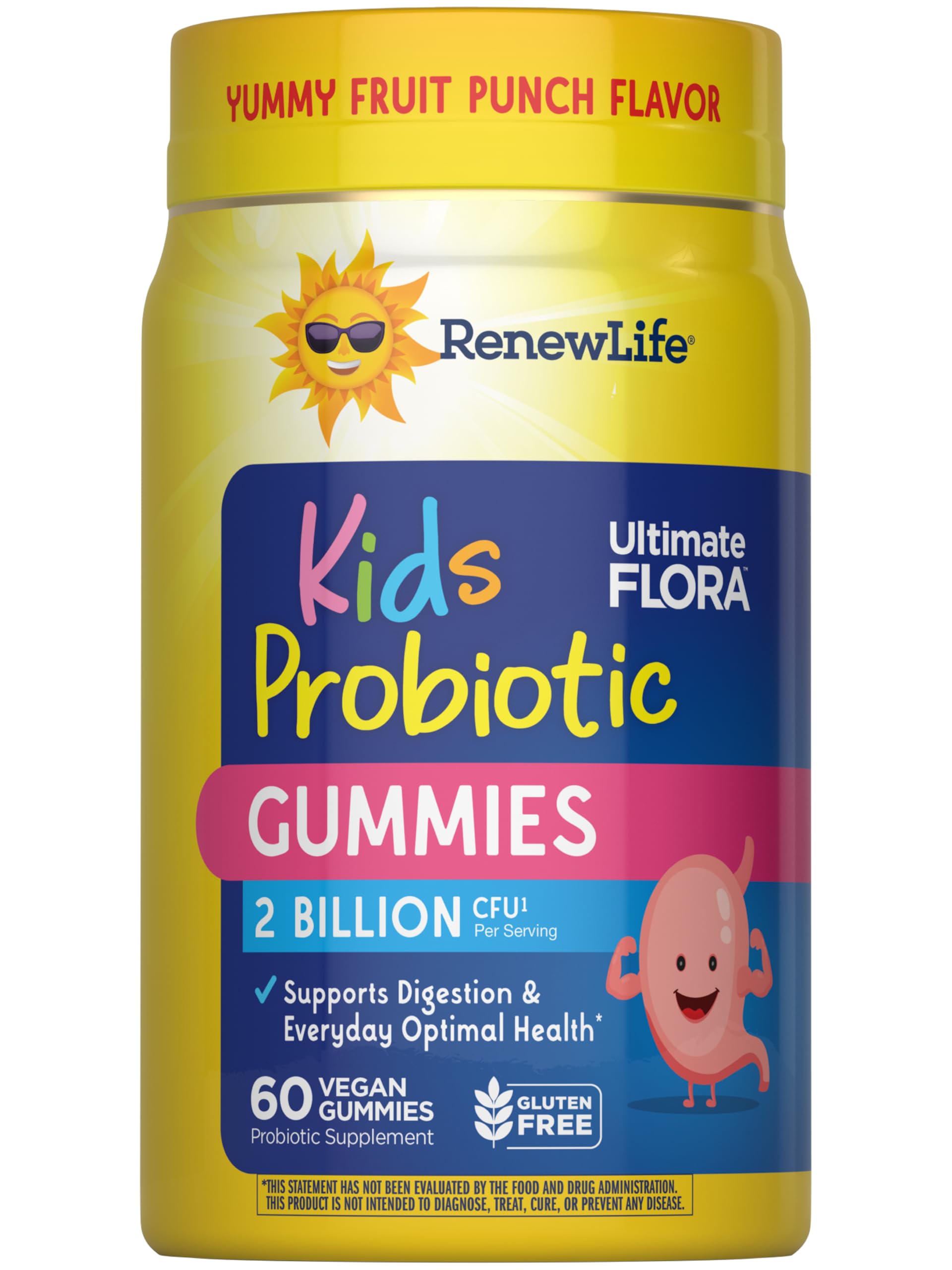 FEELING GUTSY FOR 25 YEARS AND COUNTING: Renew Life puts health and wellness first with daily supplements that are backed by over 25 years of clinical trials. GLOBAL INGREDIENTS: Created with the highest quality global ingredients, this Renew Life probiotic supplement is dairy-free and soy-free. HOW TO USE THESE PROBIOTICS: Children 3 years and older, chew two probiotic gummies daily refrigeration is not required. TOP-QUALITY: Potency, quality and purity of these kids probiotic supplements are guaranteed through the expiration date. TESTED AND FORMULATED: Probiotic kids supplement includes 2 billion cultures and a scientifically studied strain to promote optimal digestion in children (1). MULTIPLE BENEFITS: Helps support overall health and optimal digestion in kids (1). CLINICALLY TESTED STRAIN: Daily probiotic made with a scientifically studied strain of B. coagulans in delicious fruit-flavored probiotic gummy supplements. PROBIOTIC: Includes one 60-count bottle of Renew Life Kids Probiotic Gummies 2 Billion CFU to support kids' digestion and everyday optimal health in children (1).