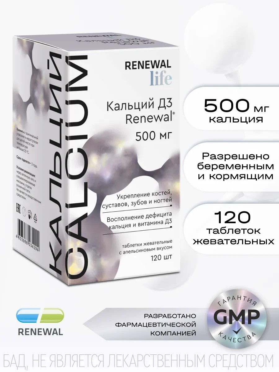 Комбинированное средство на основе кальция и витамина Д3. Восполняет недостаток витамина Д3 в организме, укрепляет костную ткань, препятствует вымыванию кальция из костей. Применяется для профилактики остеопороза, для восполнения дефицита кальция в период интенсивного роста организма, женщинам в период беременности и лактации, а также лицам пожилого возраста. Рекомендовано детям с 3-х лет. Фармацевтическая компания Renewal занимается разработкой и производством современных, качественных, доступных лекарственных препаратов. Вся продукция соответствует стандартам качества GPM и ISO 9001:2015.