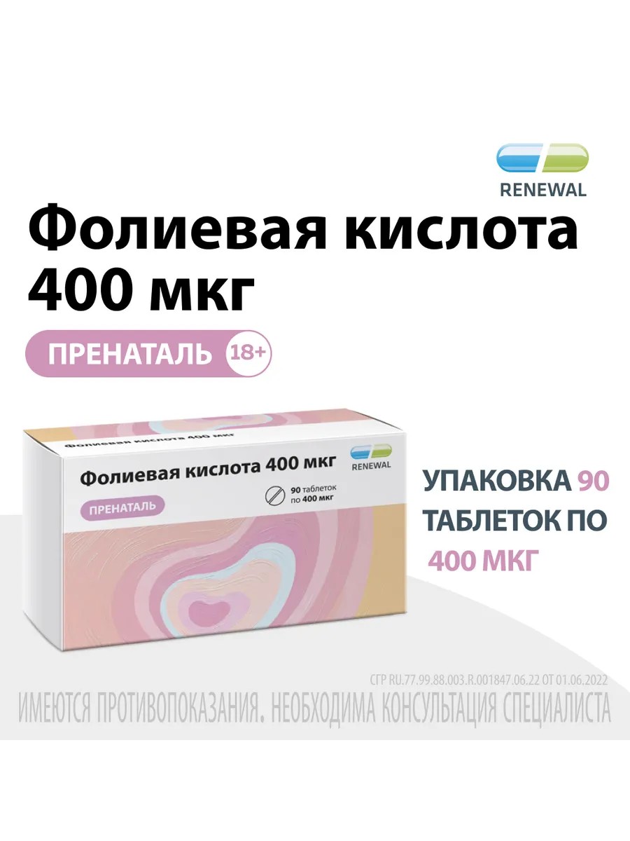 | Trade name | biologically active food supplement "Folic acid 400 mcg prenatal" (100 mg tablets) |