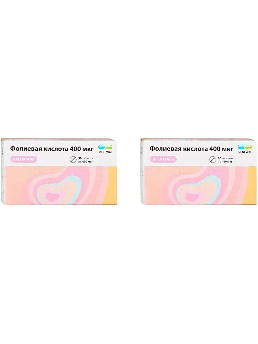 RENEWAL Фолиевая кислота 400 мкг пренаталь, 90 таб по 100 мг х 2 уп