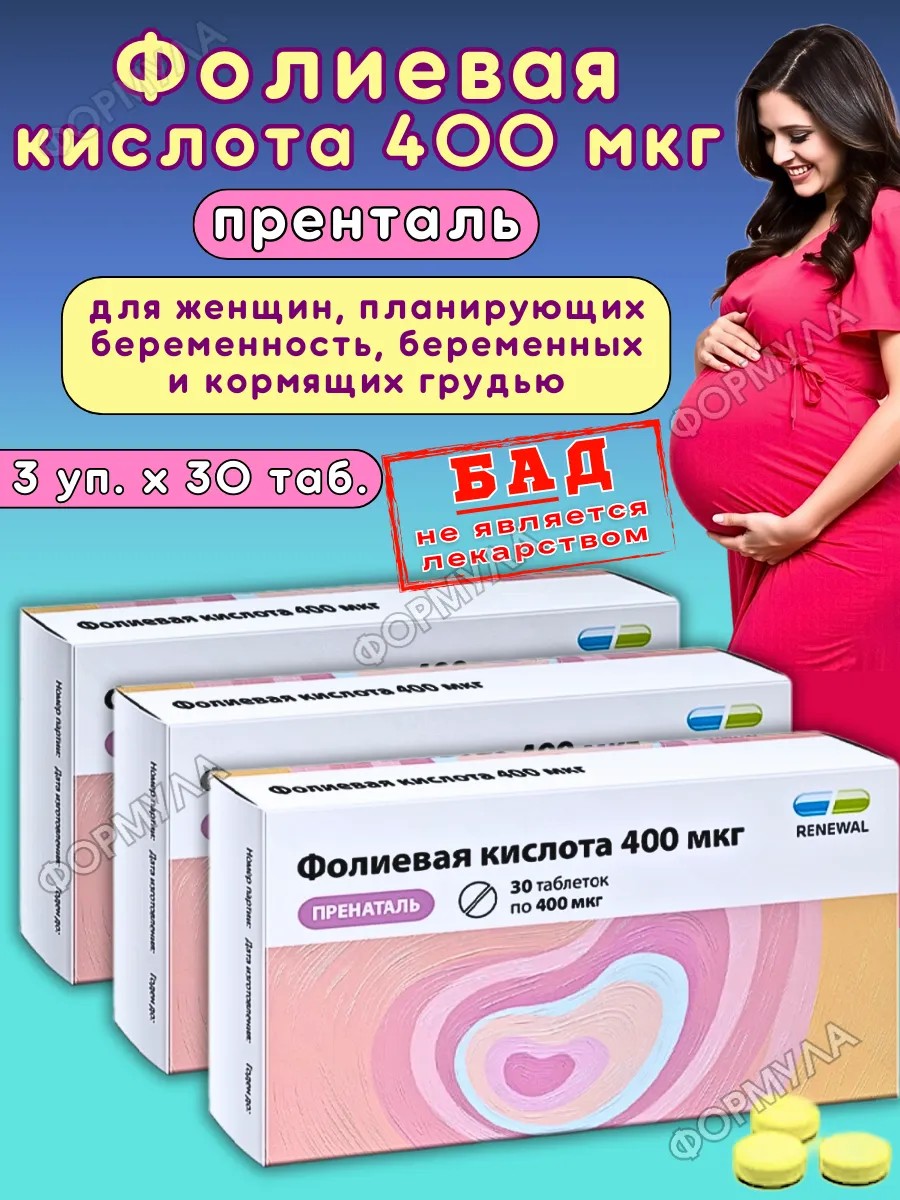 | Полное наименование товара | Фолиевая кислота 400 мкг пренаталь 30 шт. таблетки массой 100 мг |