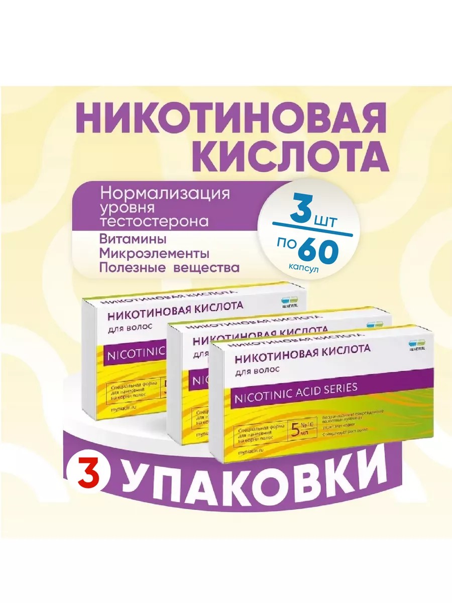 Никотиновая кислота для волос, 3 упаковки по 10 шт, Комплект