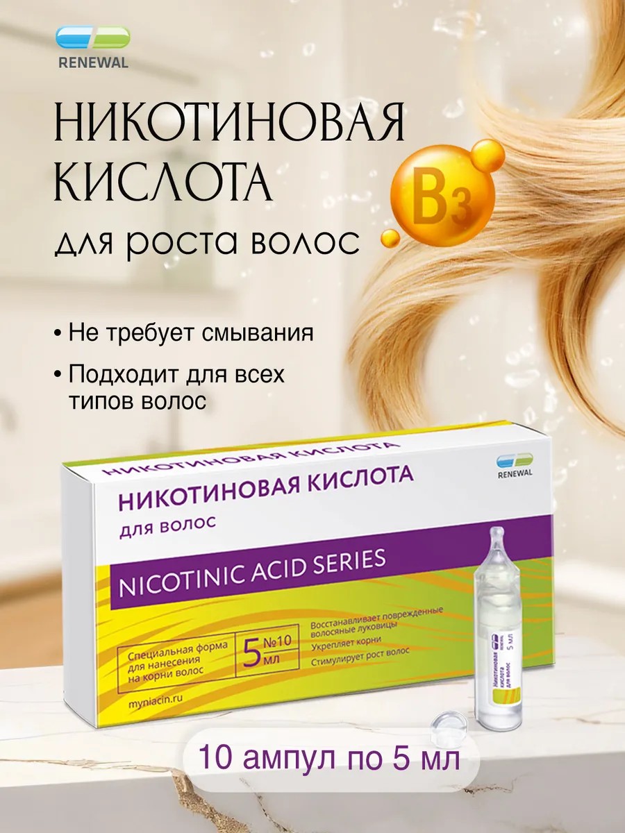 Nicotinic acid in ampoules from the RENEWAL brand is an effective product for comprehensive hair care, helping to improve hair condition, accelerate growth, and add healthy shine.