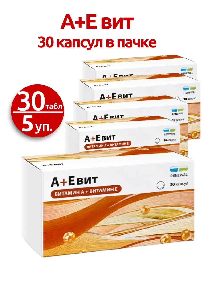RENEWAL Витамины А+Е вит 330 мг 30 капсул в упаковке, 5 уп.