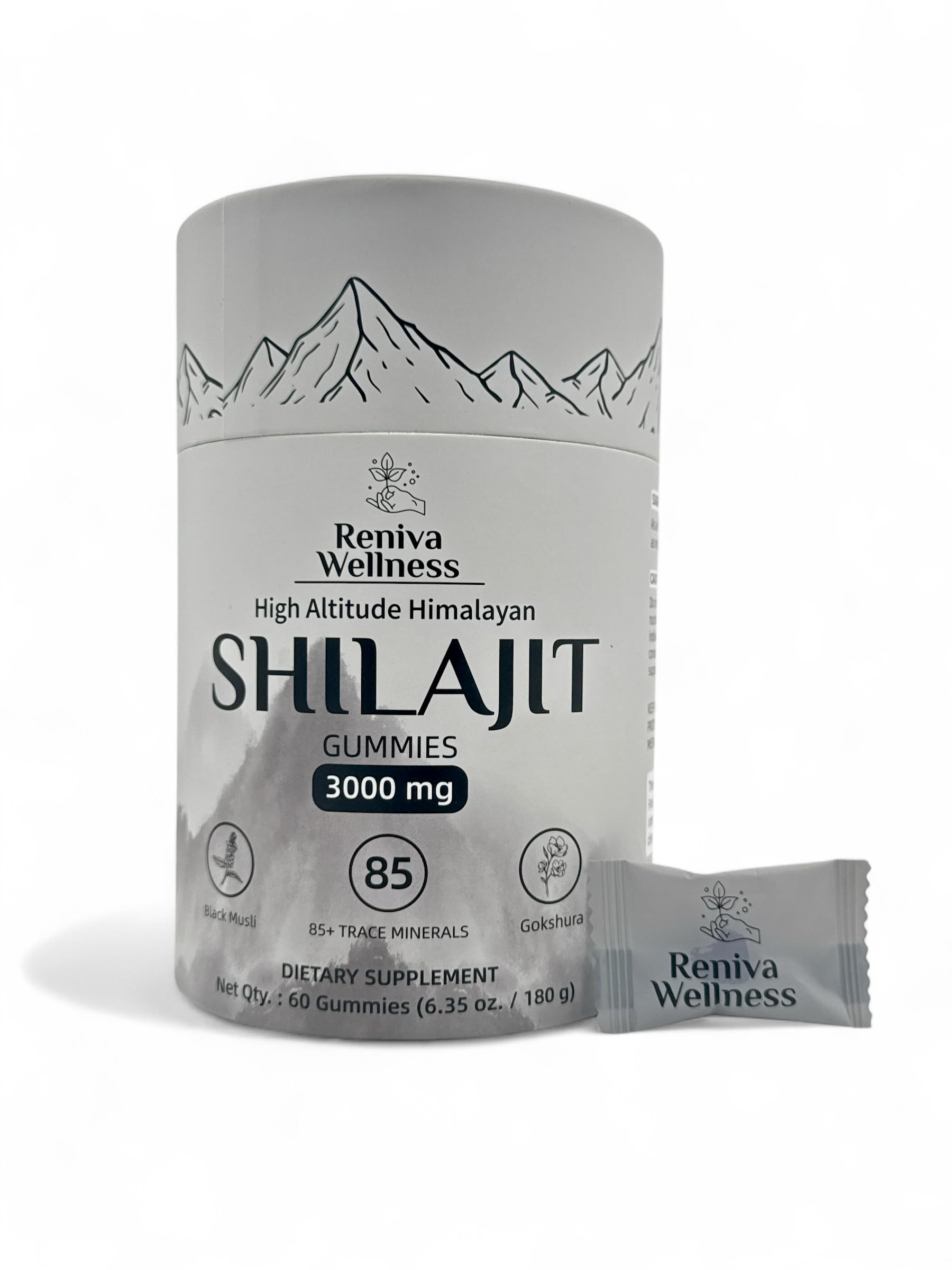 Reniva Wellness Shilajit Gummies – The Ultimate High-Altitude Superfood for Energy, Focus, and Vitality! Imagine unlocking boundless energy, laser-sharp focus, and total vitality—all in one delicious, convenient gummy. With Reniva Wellness Shilajit Gummies, you don't have to imagine. Sourced from the pristine Himalayan mountains at an altitude of 18,000 ft, our pure shilajit gold is the most potent, premium, and powerful on the market. Packed with 3000mg of Himalayan Shilajit, these gummies are your secret weapon to supercharge your day and outshine the competition. Why Choose Reniva Wellness? Unmatched Purity Potency: Our shilajit gold contains an incredible 75 fulvic acid and 85 trace minerals, delivering unparalleled energy, stamina, and overall wellness. This is not your average Shilajit—it's the gold standard. Adaptogen Powerhouse: Each serving is enriched with ashwagandha, ginger, ginseng, black musli, gokshura, and kaunch—nature's most powerful ingredients for stress relief, mental clarity, and physical performance. These aren't just gummies they're superfood gummies with a purpose. Delicious Natural Tamarind Flavor: Forget the bitter aftertaste of traditional Shilajit! Our shilajit gummies are naturally flavored with tamarind, delivering a delicious experience without added sugar. Indulge guilt-free with a flavor that's loved by all. Third-Party Lab Tested: Rest easy knowing that your health is in good hands. Our gummies are rigorously tested for safety, purity, and freedom from heavy metals. Vegan, gluten-free, and crafted with care, Reniva is the brand you can trust. Benefits You Can Feel: Boost your energy naturally with the power of shilajit energy—no crashes, just all-day vitality. Sharpen your focus with adaptogens and Himalayan Shilajit, helping you conquer work, workouts, and life. Strengthen your immune system with antioxidant-rich ingredients and trace minerals. Stylish, Functional Packaging for On-the-Go Lifestyles Our sleek, cylindrical grey tube stands out from the sea of boring black-and-gold competitors. Each gummy is individually wrapped for mess-free convenience, making it perfect for travel, work, or the gym. Wellness should fit seamlessly into your routine, and Reniva ensures it does. Why Settle for Less? Whether you're seeking the best shilajit gummies, a boost in shilajit energy, or the ultimate pure shilajit experience, Reniva Wellness delivers. Packed with Himalayan Shilajit Gold, enriched with ashwagandha, and crafted with care, these superfood gummies are everything you need to elevate your health and vitality. Your journey to better energy, focus, and wellness starts here. Add Reniva Wellness Shilajit Gummies to your cart now and experience the difference of true Himalayan Shilajit!5. LEVEL UP YOUR PHYSICAL PERFORMANCE Push harder, lift stronger, and recover faster! These powerhouse gummies, boosted with Ginseng and Black Musli, are perfect for gym-goers and active lifestyles. Whether you're lifting weights or chg kids, Reniva gives you the strength to power through it all with ease. 4. FIGHT AGING WITH NATURE'S BEST Look and feel younger with antioxidant-rich Shilajit and fulvic acid that combat free radicals, restore vitality, and promote glowing skin and healthier hair. Embrace graceful aging with the power of adaptogens and minerals designed to keep you feeling as vibrant as ever. 3. PROVEN QUALITY, LAB TESTED FOR PURITY Unlike competitors, Reniva Wellness gummies are third-party lab tested to guarantee safety and effectiveness. Free from heavy metals, 100 vegan, and gluten-free, this is a product you can trust with your health. 2. MULTI-BENEFIT SUPERFOOD GUMMIES FOR TOTAL WELLNESS Our powerful blend includes Shilajit, Ashwagandha, Ginseng, Black Musli, Kaunch, and 85 trace minerals to boost energy, immunity, mental clarity, and healthy aging—all in one delicious gummy. Why settle for less when you can have it all?. 1. HARVESTED FROM THE HIGHEST ALTITUDES FOR MAXIMUM POTENCY Reniva's Shilajit is sourced at 18,000 ft above sea level, ensuring unparalleled purity and potency. Packed with 3000mg of Himalayan Shilajit Gold per serving, plus 75 fulvic acid, it's designed to deliver results no competitor can match.