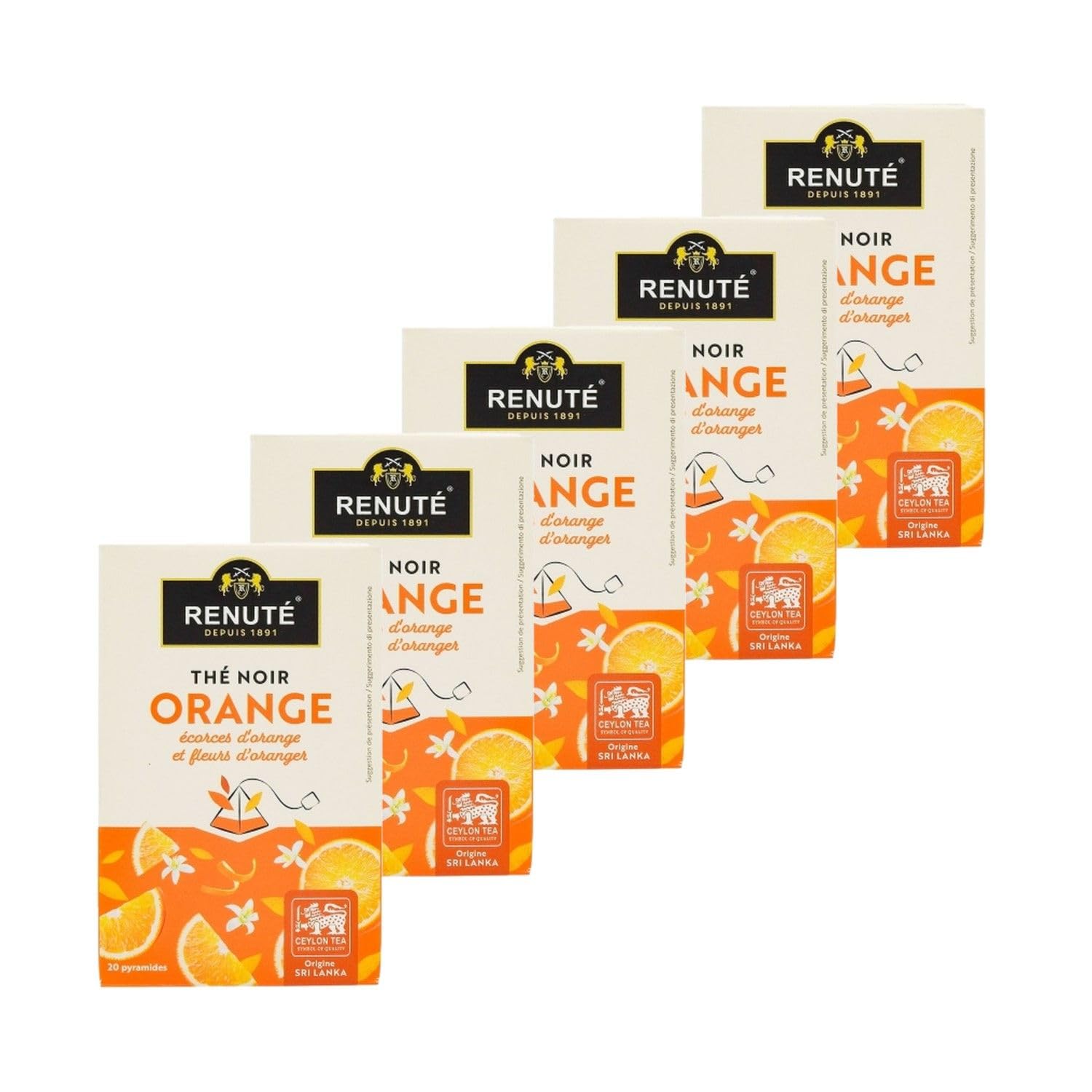This set contains 5 products described below: Renuté's Orange Black Tea is a perfect blend of flavors with a delicious orange taste. Ingredients: Black tea (89 ), orange peel (7.6 ), orange blossom (1.7 ), flavoring (1.7 ). Allergens: None Storage Instructions: Store at room temperature, away from heat and humidity, before opening. Directions for Use: Steep for approximately 5 minutes, depending on the desired strength, in boiling water. Product Information: Net Weight: 32g Origin: Sri Lanka Energy: NCKJ NCKcal Fat: N Ag of which saturates: N Ag Carbohydrate: N Ag of which sugars: N A Protein: N A Dietary Fiber: N A Salt: N A Packaging: Cardboard Box Full details are available on the product packaging. The information on this page is for guidance only. Please refer to the product label for information regarding food allergies. INGREDIENTS Black tea (89 ), orange peel (7.6 ), orange blossom (1.7 ), flavoring (1.7 ). SAFETY WARNING Full details are available on the product packaging. The information on this page is for guidance only. Please refer to the product label for information regarding food allergies. See moreLot 5x Thé noir à l'orange - 20 sachets - Boîte 32gDESCRIPTION DU PRODUIT DESCRIPTION DU PRODUIT Ce lot contient 5 produits décrits ci-dessous : Le thé noir à l'orange de Renuté est un parfait mélange de saveurs au délicieux goût d'orange. Ingrédients : Thé noir ( 89 ), écorce d'orange (7,6 ), fleur d'oranger (1,7 ), arôme (1,7 ). Allergènes : Aucun Mode de conservation : A conserver à température ambiante, à l'abri de la chaleur et de l'humidité avant ouverture. Conseil d'utilisation : Laisser infuser environ 5 minutes en fonction de l'intensité souhaitée dans une eau bouillante. Informations produit : Poids net : 32g Origine : Sri Lanka Energie : NCKJ NCKcal Lipides : NCg dont acides gras saturés NCg Glucides : NCg dont sucres NCg Protéines : NCg Fibres alimentaires : NCg Sel : NCg Emballage : Boîte en Carton Détail complet et disponible sur l'emballage du produit. Les informations présentes sur cette page sont à titre indicatif. Nous vous invitons à prendre connaissance des informations sur l'étiquette du produit, en particulier concernant les allergies alimentaires. INGRÉDIENTS Thé noir ( 89 ), écorce d'orange (7,6 ), fleur d'oranger (1,7 ), arôme (1,7 ). AVERTISSEMENT DE SÉCURITÉ Détail complet et disponible sur l'emballage du produit. Les informations présentes sur cette page sont à titre indicatif. Nous vous invitons à prendre connaissance des informations sur l'étiquette du produit, en particulier concernant les allergies alimentaires. Voir plus