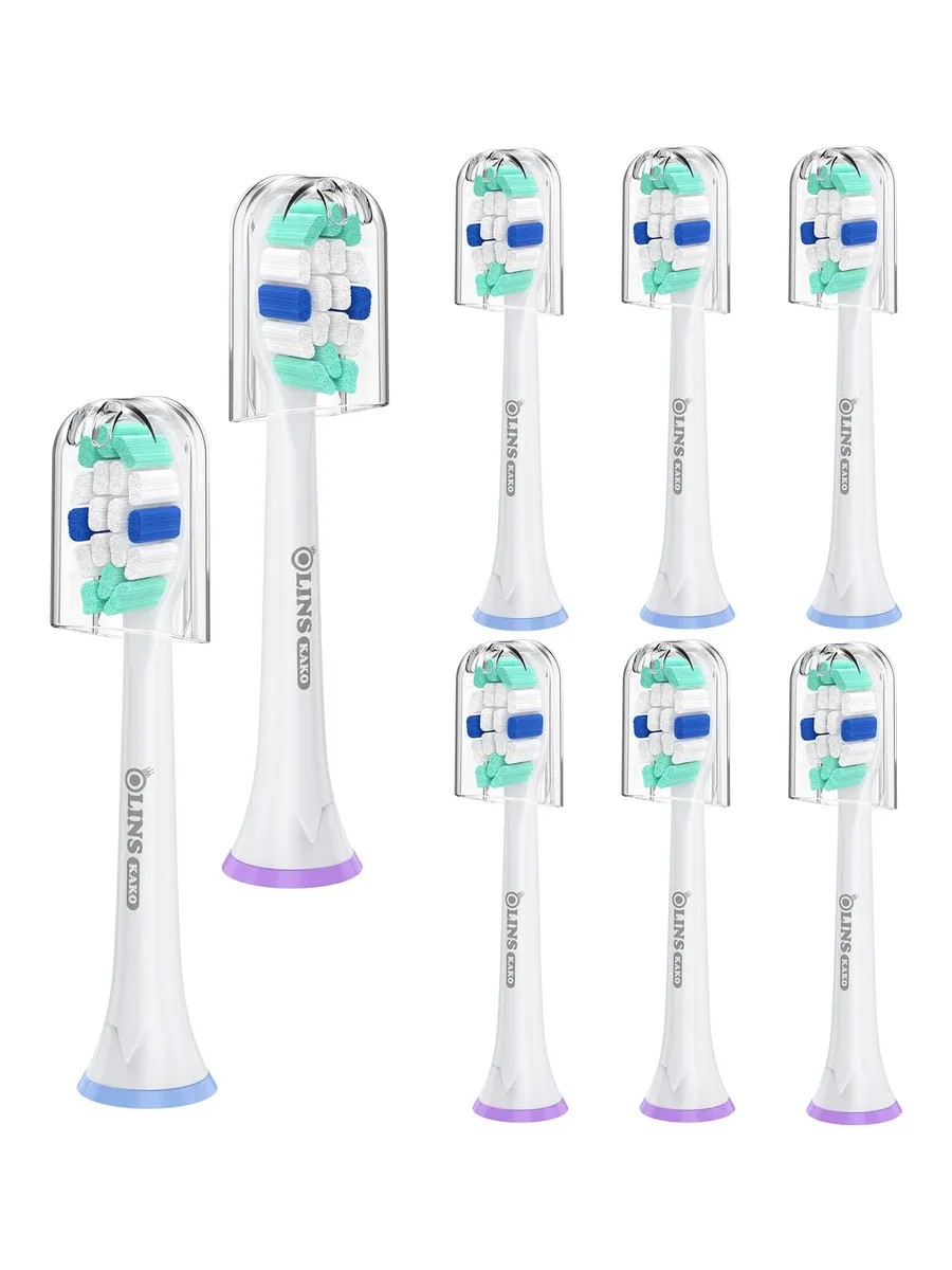 Заместительные насадки для зубных щеток используют немецкие голубые щетинки, которые теряют цвет, чтобы напомнить вам регулярно менять насадку. Стоматологи рекомендуют менять ее каждые 3 месяца для более эффективной очистки. Изготовлены из высококачественных нейлоновых волокон и ПП - материала, не ломаются легко. Верхняя часть насадок обработана до гладкости и не повредит полость рта. Наслаждайтесь комфортным временем почистки зубов!