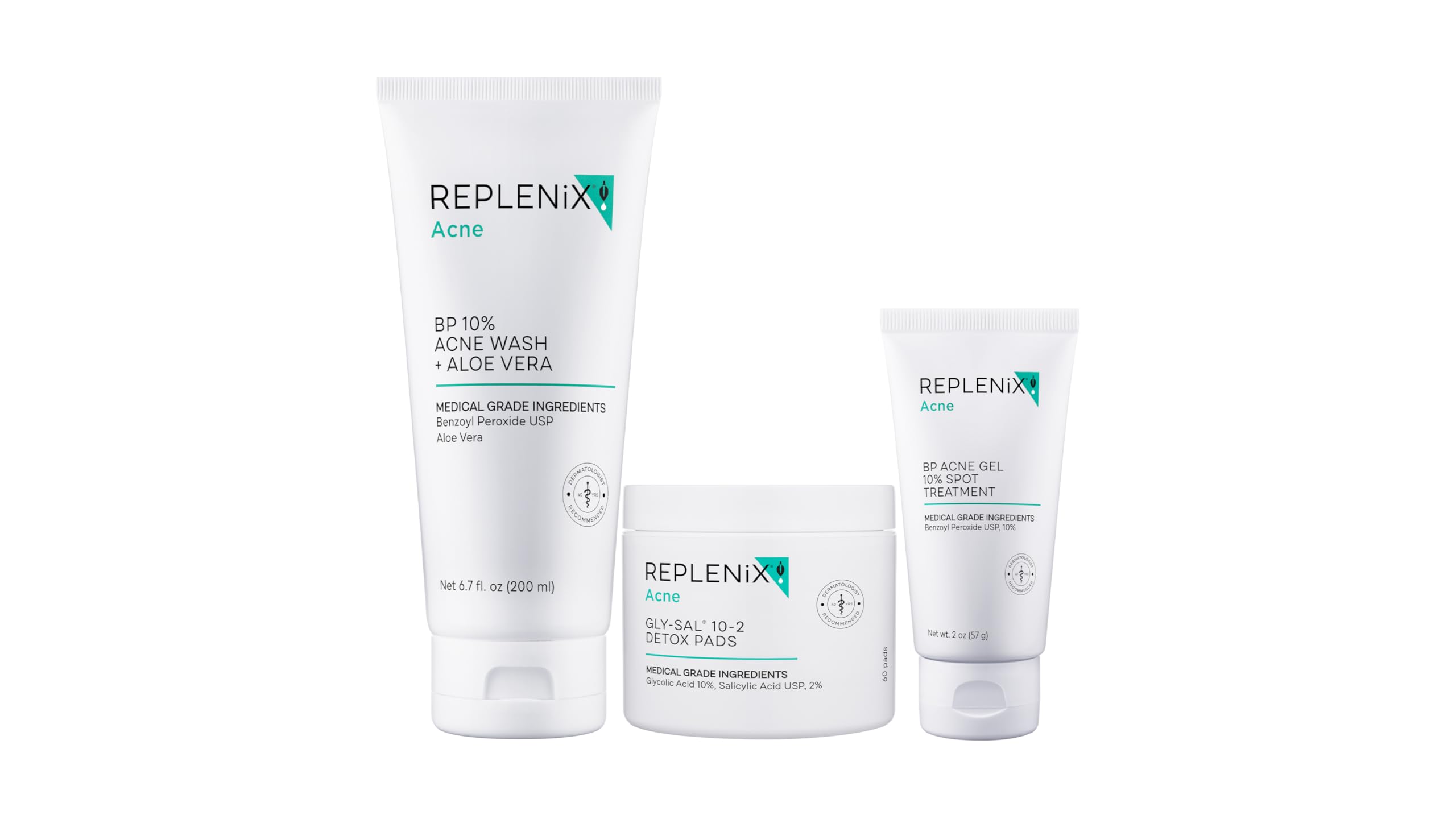 Replenix Acne Treatment Skin Care Regimen Medical-Grade Set Includes Glycolic Acid Resurfacing Cleanser (6.7 fl. oz) Gly-Sal Clarifying Acne Pads (60 ct.) & Benzoyl Peroxide Acne Gel (2 oz)