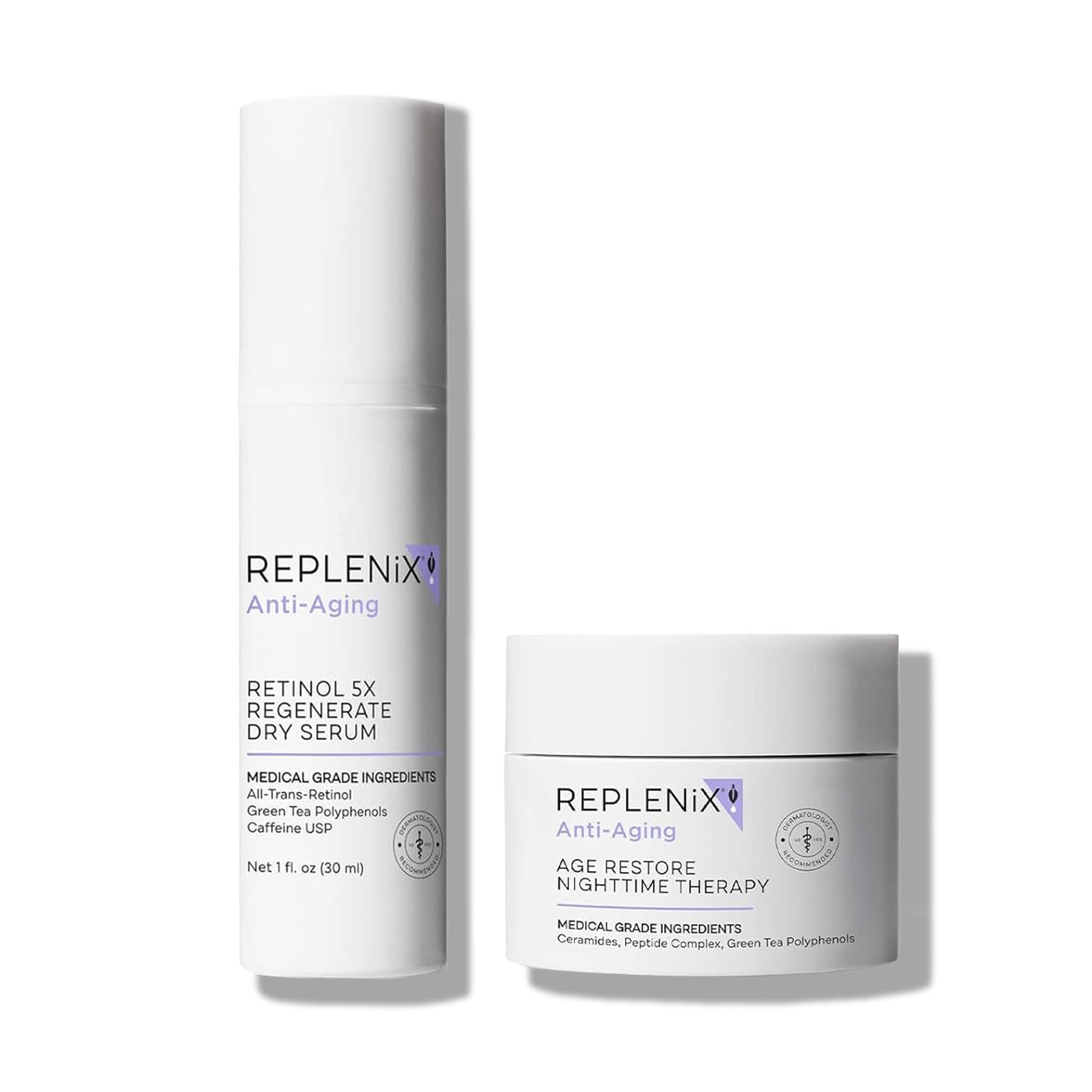 Replenix Anti-Aging Treatment Skin Care Bundle Medical-Grade Set Includes Regenerate Retinol Dry Serum 5x (1 fl. oz) & Age Restore Nighttime Therapy Night Cream (1.7 oz)