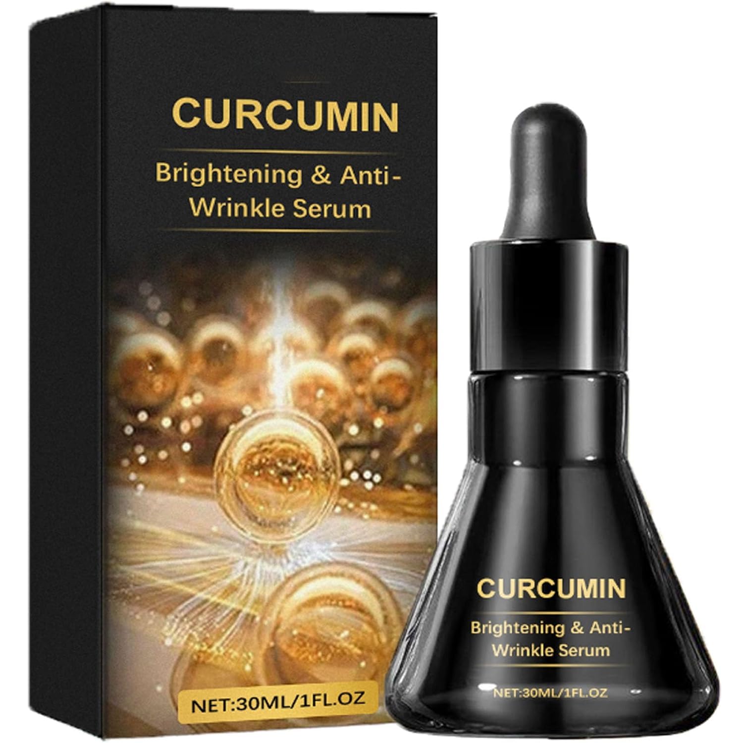 Specifications: Name: Curcumin Brightening Anti-Wrinkle Serum Net Content: 30 ml Shelf Life: 3 years Package Includes: 1 2 3 pcs Curcumin Brightening Anti-Wrinkle Serum SAFETY WARNING 1