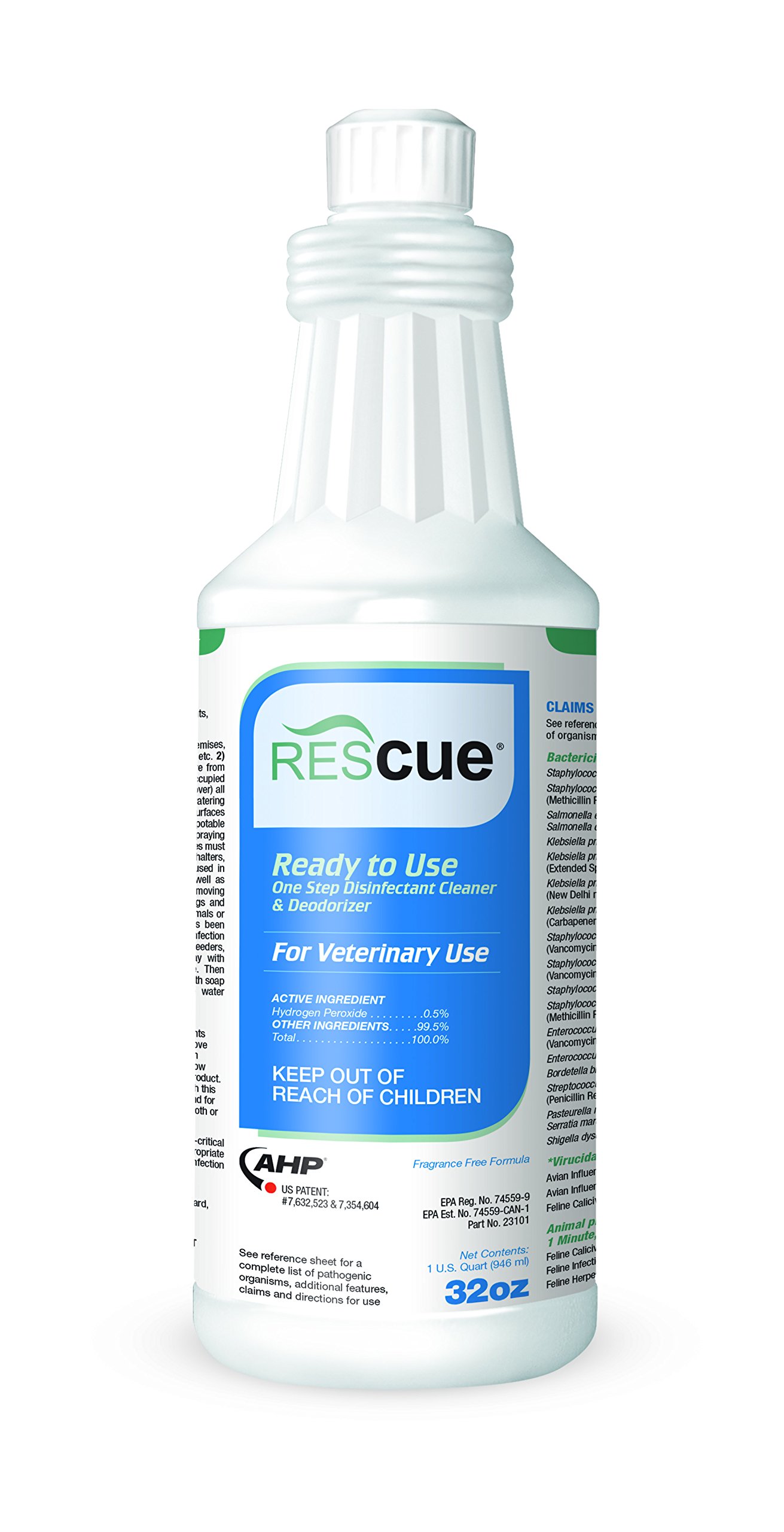 Rescue ready to use is a one-step cleaner disinfectant that prevents outbreaks and kills a broad-spectrum of pathogens within 1 minute (including canine Parvovirus). ready to use (RTU) is osha-compliant, requiring no dilution, is a non-irritant. Recommended by door marty Becker, rescue is the only disinfectant of fear free.