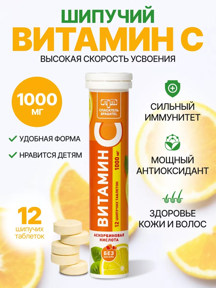 СПАСАТЕЛЬ Витамин C шипучий для иммунитета 1000 мг 12 таблеток