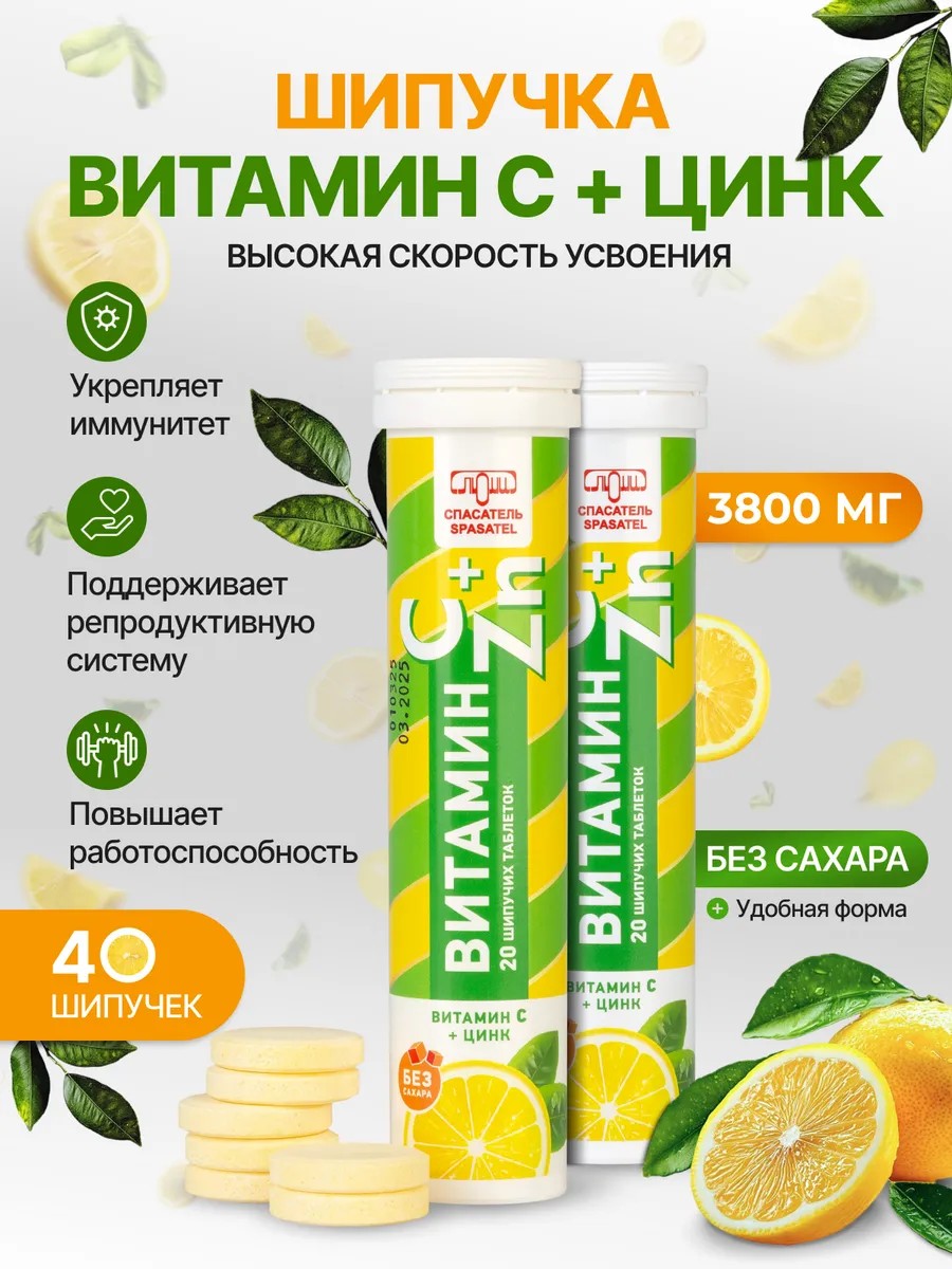 СПАСАТЕЛЬ Витамин С + Цинк 40 шипучих таблеток