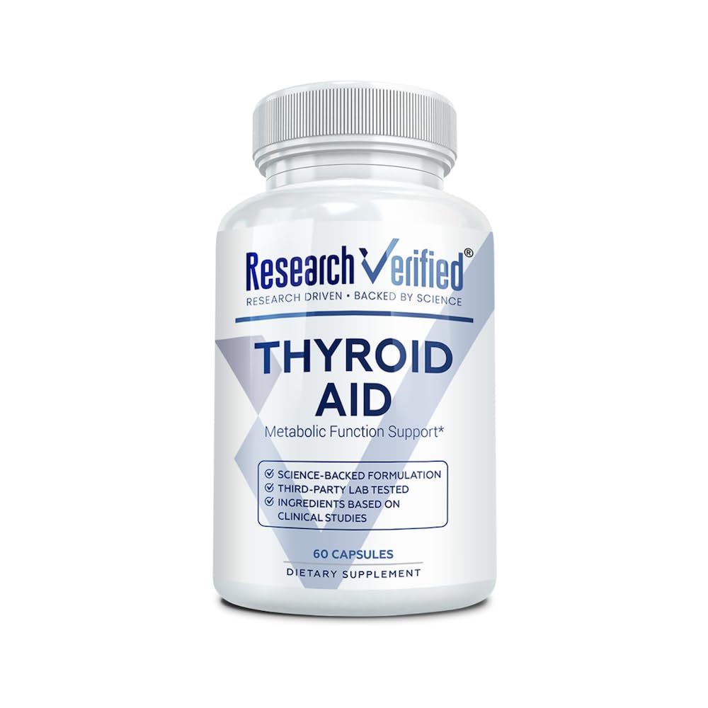 • Research Verified Thyroid Aid combines vitamins, minerals, and herbal ingredients traditionally used to support healthy thyroid hormone production and metabolic activity.