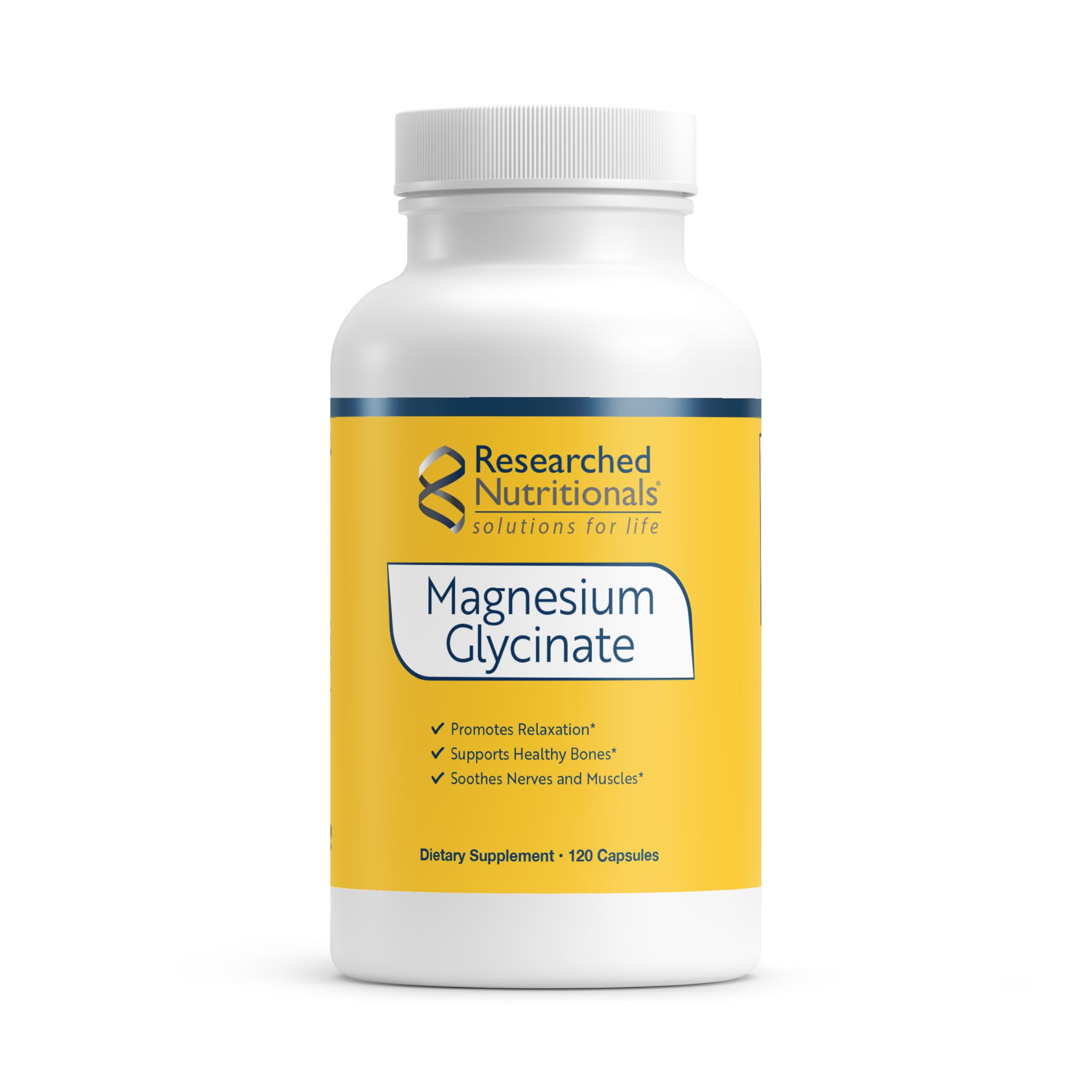 Researched Nutritionals Magnesium Glycinate Capsules - 125mg High Absorption Magnesium Glycinate Supplement to Support Healthy Bones and Energy Production - Vegan & Non-GMO (120 Capsules)