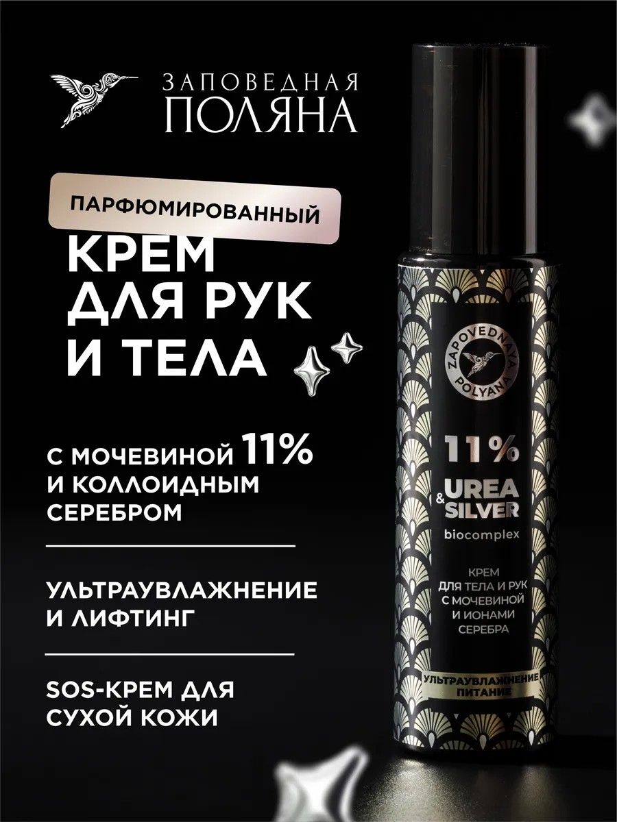 UREA & SILVER hand and body cream with 11% urea and colloidal silver from ZAPOVEDNAYA POLYANA is an effective intensive skin care product. The formula is enriched with urea, which deeply moisturizes and softens the skin, promoting its regeneration.