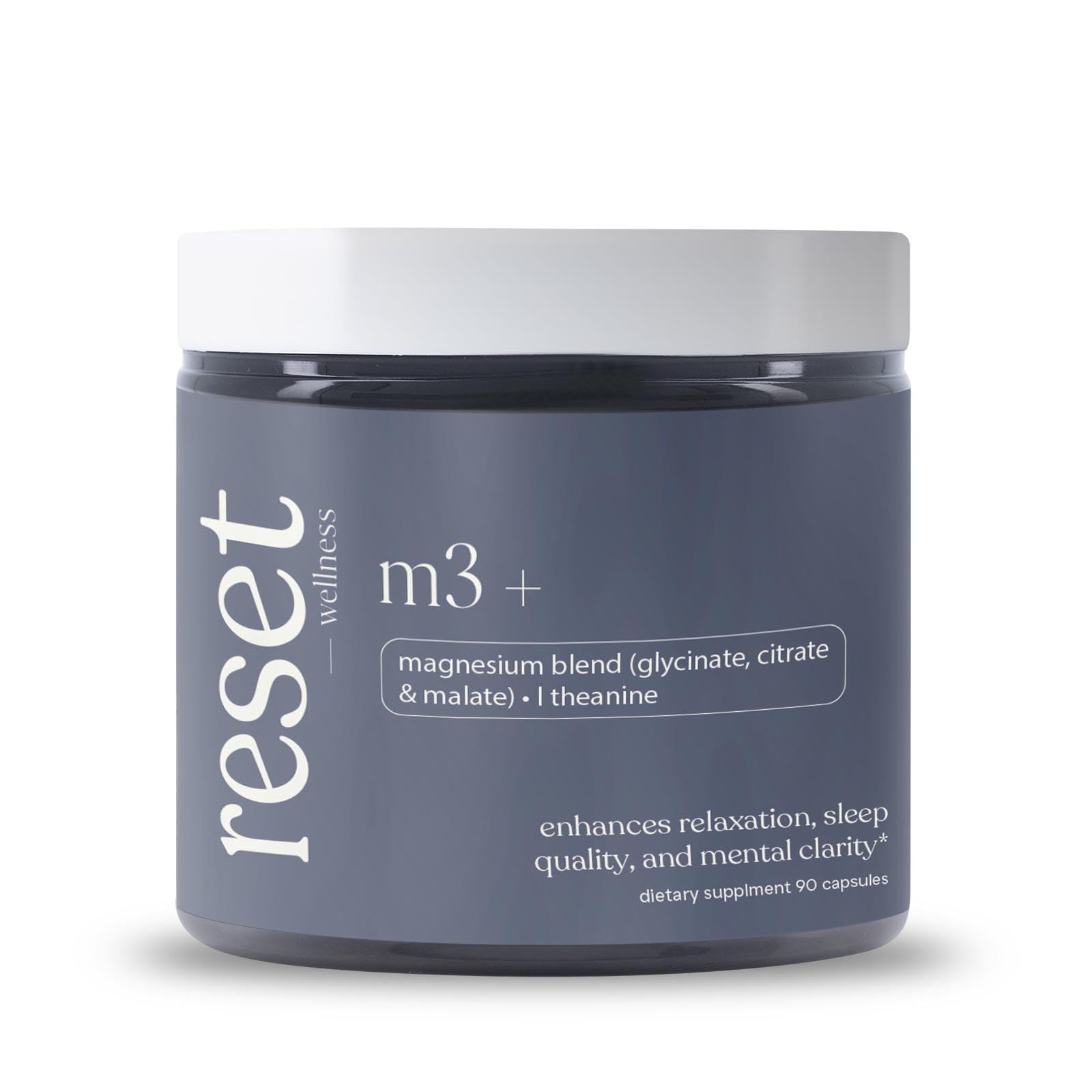 The Reset Wellness Promise Developed by health professionals with 45 years of expertise in the dietary supplement industry. Our mission is simple: to raise the standard of wellness products and help you give your life a reset. Premium Quality You Can Trust Manufactured in GMP-certified facilities, using only science-backed ingredients in their most active forms — free from GMOs, gluten, soy, and artificial additives. Synergistic Formula Backed by Science Our carefully crafted blend targets the nervous system, supporting stress relief and helping you feel balanced, calm, and energized. . Supports Relaxation, Sleep Mental Clarity Combined with L-theanine and Vitamin B6, M3 promotes deep relaxation, helps improve sleep quality, and enhances focus and mental clarity throughout the day. . Triple Magnesium Power for Better Absorption Our M3 formula delivers 300 mg of elemental magnesium from citrate, glycinate, and malate — three highly bioavailable forms designed to maximize absorption and effectiveness. .