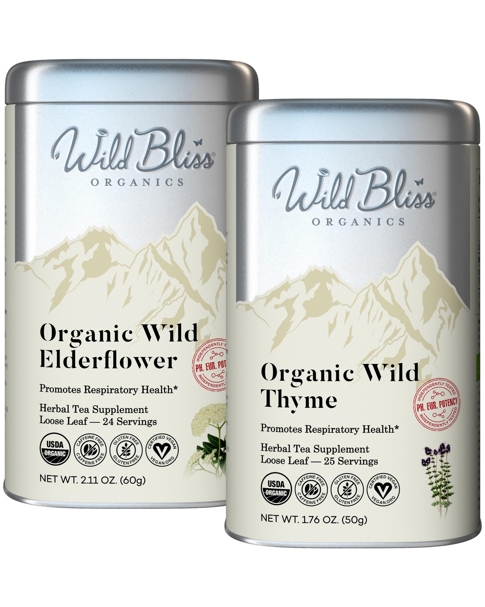 Respiratory and Bronchial Wellness Tea - Organic Wild Elderflower and Thyme Immune Support - 50 Servings