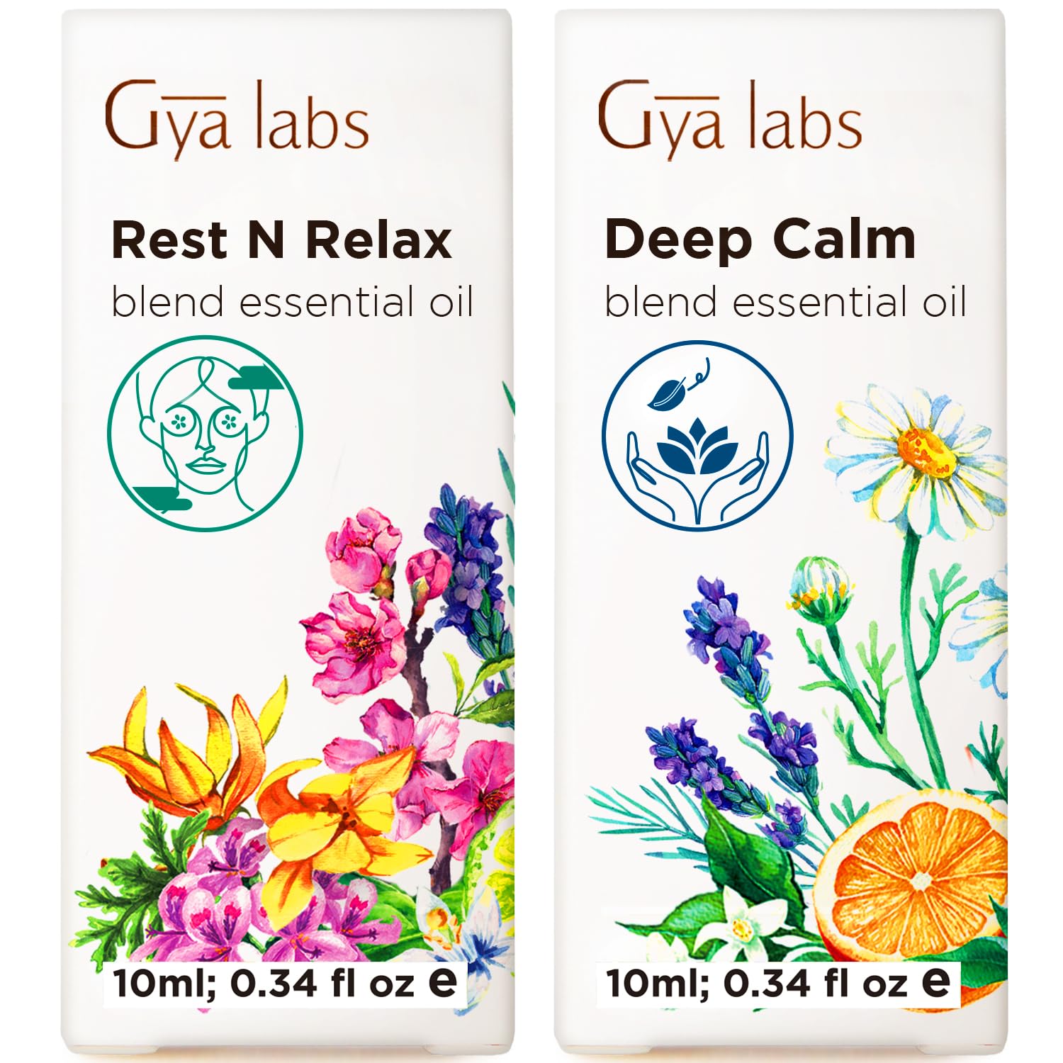 Rest N Relax Essential Oil Blend & Deep Calm Essential Oil for Diffuser Set - Aromatherapy Grade Essential Oils Set - 2x0.34 fl oz - Gya Labs