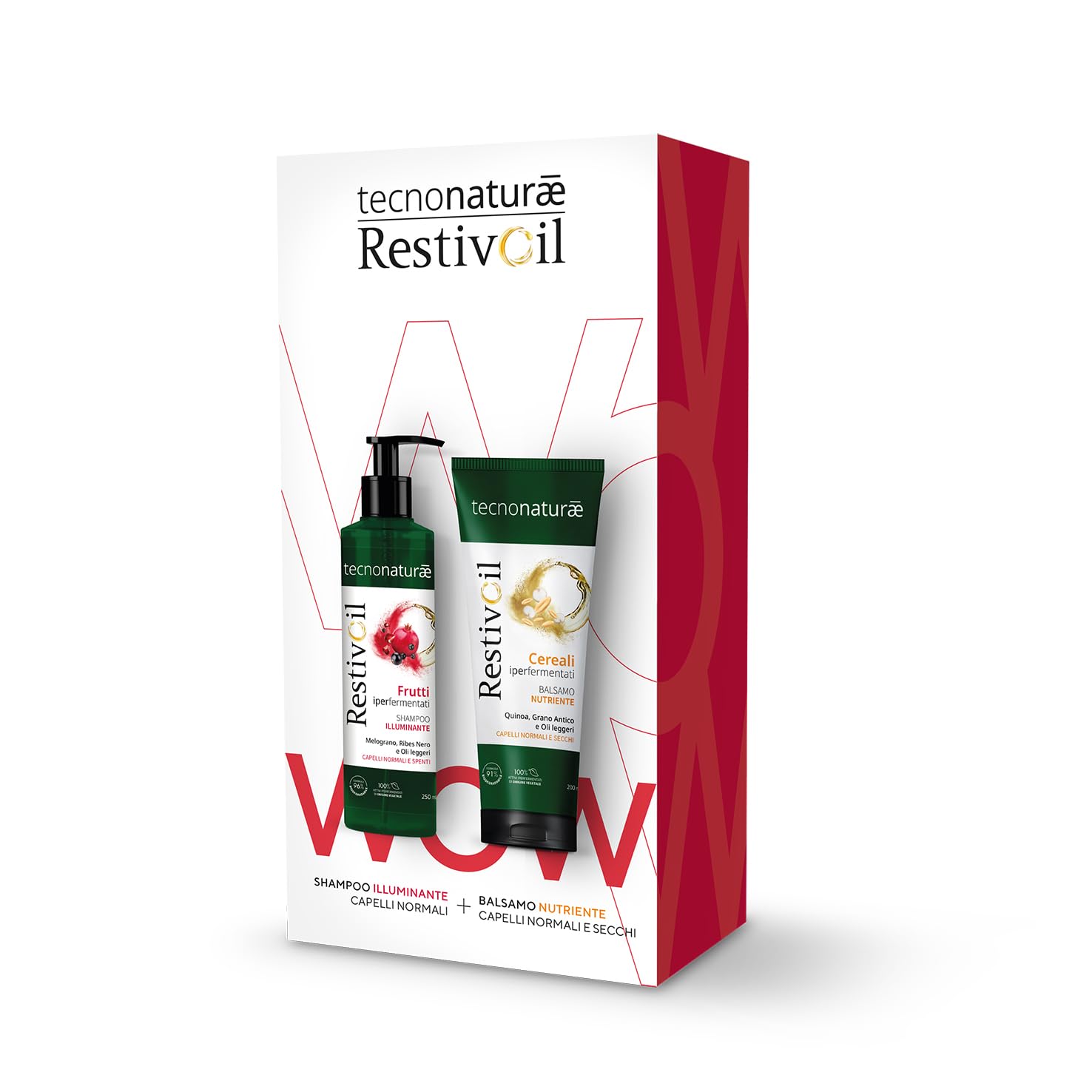 The Restivoil Tecnonaturae kit combines shampoo and nourishing conditioner to offer a complete hair care routine. Formulated with carefully selected natural ingredients, these products help keep your hair clean, healthy, and hydrated. This product includes two products: shampoo and conditioner. From Italian research by Restivoil comes the Tecnonaturae line with 100 plant-based, hyperfermented active ingredients for healthy-looking, vibrant hair. A transparent and delicate texture makes shampooing a truly pampering experience. The Color Protect Complex protects hair and helps reduce color fading caused by frequent washing, hot styling tools, UV rays, and salt water, while also protecting against free radicals. The formula is up to 95 biodegradable and contains only plant-based surfactants. It is free of silicones and dyes for a natural feel. The bottle is made from 35 recycled plastic. INGREDIENTS Shampoo: Hyperfermented pomegranate, blackcurrant, light camelina, macadamia, and almond oils Breast Conditioner: Hyperfermented quinoa, ancient wheat, light camelina, olive, and castor oils SAFETY WARNING Very slight variations in the product's appearance are due to the natural origin of its ingredients and do not affect its quality. See moreRestivoil Tecnonature Bipack Illuminant Shampooing 250 ml Baume Nourrissant 200 mlDESCRIPTION DU PRODUIT DESCRIPTION DU PRODUIT Le kit Restivoil Tecnonaturae combine shampoing et baume nourrissant pour offrir une routine complète de soin des cheveux. Formulés avec des ingrédients naturels sélectionnés avec soin, ces produits aident à garder vos cheveux propres, sains et hydratés. Produit composé de deux produits : shampooing et après-shampoing. De la recherche italienne Restivoil, naît la ligne Tecnonature avec des actifs hyperfermentés 100 d'origine végétale, pour des cheveux à l'aspect sain et vivant. Texture transparente et délicate, pour rendre le moment du shampooing une expérience de bien-être. Le Color Protect Complex protège les cheveux et aide à réduire la décoloration de la couleur due à des lavages fréquents, des instruments à chaud, des rayons UV, de l'eau salée et protège contre les radicaux libres. Formule biodégradable jusqu'à 95 avec seulement des tensioactifs d'origine végétale. Sans silicones et colorants pour un toucher naturel. Flacon de plastique recyclé à 35 . INGRÉDIENTS Shampoing : hyperfermentés de grenade, cassis, huiles légères de caméline, macadamia et amande Baume : hyperfermentés de quinoa, blé ancien, huiles légères de caméline, olive et ricin. AVERTISSEMENT DE SÉCURITÉ Les éventuelles variations de l'aspect du produit sont dues à l'origine naturelle de ses ingrédients et n'affectent pas sa qualité. Voir plusColor Protect Complex protège les cheveux et aide à réduire la décoloration de la couleur due à des lavages fréquents, des instruments à chaud, des rayons UV, de l'eau salée et protège contre les radicaux libres. Le système d'hyperfermentation permet d'extraire les actifs les plus cachés et bénéfiques de la grenade et du cassis, en renforçant l'efficacité des phytocomplexes, riches en antioxydants, vitamines, polyphénols et acides aminés, essentiels pour la santé et le bien-être des cheveux et du cuir chevelu la formule du baume hydrate en profondeur les cheveux et le cuir chevelu. Texture transparente et délicate aux notes fruitées, pour rendre le moment du shampooing une expérience de bien-être. La formule nettoie en douceur les cheveux et le cuir chevelu enrichie en actifs hyperfermentés de grenade et de cassis, aide à maintenir le cuir chevelu sain et apporte des cheveux doux, brillants et hydratés. Le kit Restivoil Tecnonaturae combine un shampooing éclaircissant avec un baume nourrissant pour offrir une routine complète de soin des cheveux formulés avec des ingrédients naturels sélectionnés avec soin, ces produits aident à garder les cheveux propres, sains et hydratés.
