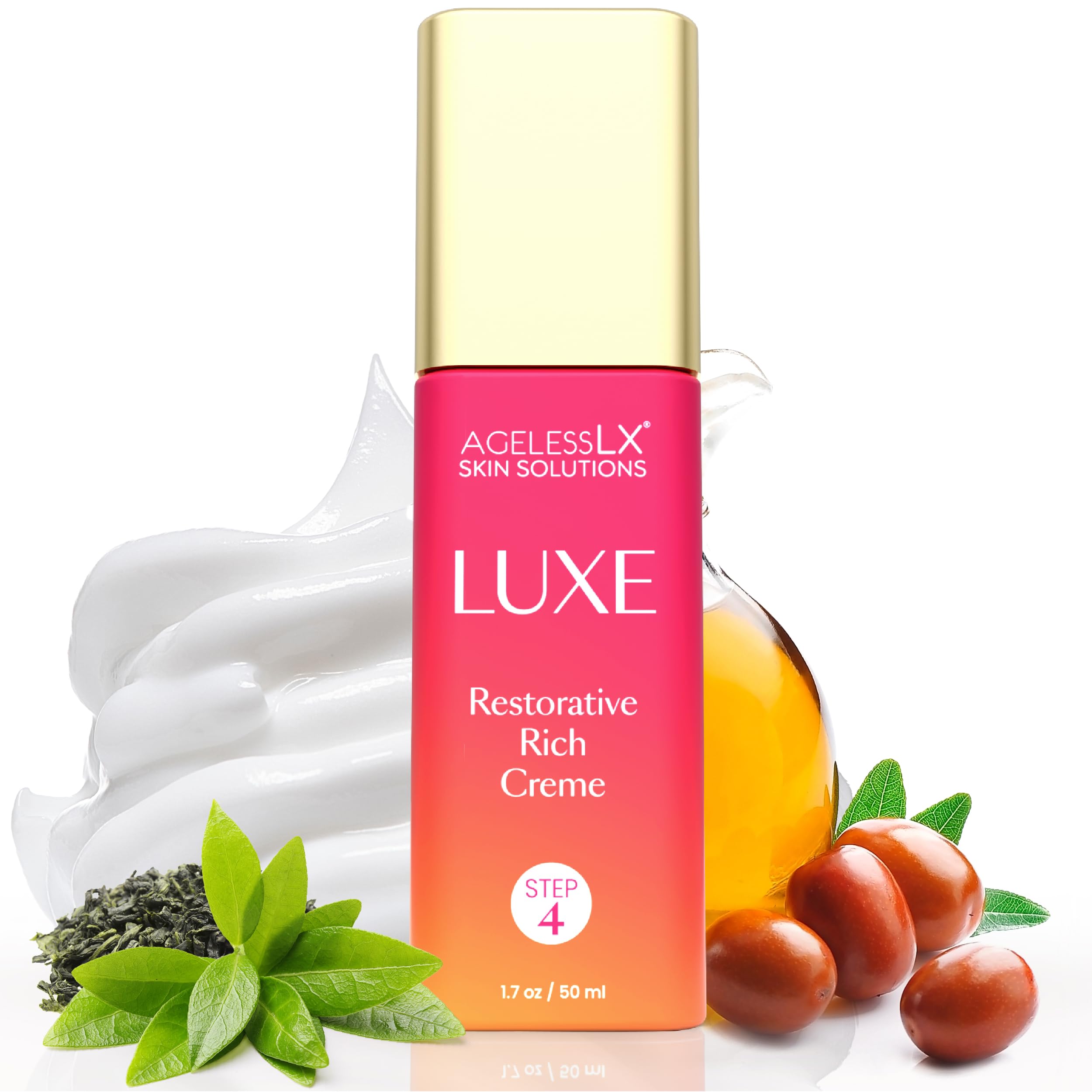 "Revitalize your skin with our product, designed to provide deep hydration and firming benefits for dry, mature, or aging skin. This is enriched with Murumuru Butter, Squalane, and Jojoba Oil to deeply nourish, improve elasticity, and strengthen your skin's natural barrier. Green Tea Extract and Camellia Seed Oil work together for your complexion and reduce dullness, leaving your skin radiant, smooth, and rejuvenated. Perfect for daily use, this gentle, non-toxic formula is suitable for all skin types, even sensitive skin. Whether you're looking to restore moisture or enhance your skin's youthful appearance, our Pro-Aging Nourishing is a must-have addition to your skincare routine. With its lightweight yet ultra-nourishing texture, this provides long-lasting hydration without feeling heavy, giving you a firm, plump, and glowing finish. How to Use: Apply a small amount of product to freshly cleansed skin. Gently massage onto the face and neck in upward motions. Use morning and night for best results. For enhanced results, pair with our Intense Hydra Eye Serum."Gentle Clean: Made with non-toxic, skin-loving ingredients suitable for all skin types, even sensitive skin fragrance-free and cruelty-free formula to support your skincare needs without irritation. Radiance-Boosting: Green Tea Extract and Camellia Seed Oil help reduce dullness improves skin tone and restores natural radiance leaves skin looking fresh, glowing, and revitalized with every use. Barrier Strengthening: Our facial moisturizer for women and men, strengthens the skin's natural barrier with antioxidants like Green Tea Extract helps lock in moisture and protect skin from environmental stress enhances skin's resilience against daily wear. Firming and Elasticity: This facial firming cream boosts skin elasticity with Jojoba Oil and Hyaluronic Acid helps reduce the appearance of fine lines restores firmness for a more youthful, lifted look over time. Deep Hydration for Face: Provides intense moisture with Murumuru Butter and Squalane keeps skin soft, nourished, and hydrated all day ideal for dry and sensitive skin needing rich, long-lasting hydration. Step 4 of the Complete 4-Step Skincare Ritual: Finish with LUXE Restorative Rich Creme locks in moisture, restores skin barrier strength, and improves firmness for long-lasting hydration and a soft, radiant glow.
