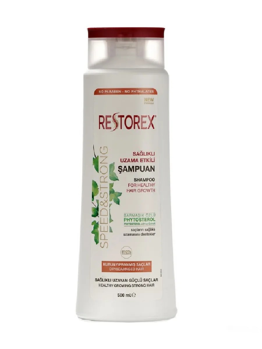 Restorex, Shampoo for Damaged Hair with Phytosterol, 500 ml. Restorex shampoo restores damaged hair, deeply nourishes, protects, strengthens, makes it soft, healthy, and adds natural shine. Directions: Apply shampoo to hair, lather, then rinse with warm water. Restorex is a unique brand offering cosmetics to stimulate healthy hair growth. The miraculous properties of ivy are the brand's hallmark. While studying the effects of ivy on hair growth, scientists developed a phytosterol substance—an herbal extract. It stimulates growth cells, while also making hair and scalp healthier. The vitamins and minerals in the products nourish and protect hair follicles, while collagen, biotin, and argan moisturize and restore hair and scalp.