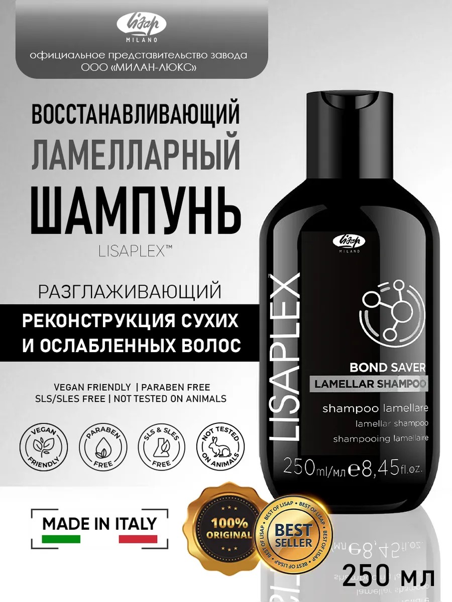 Ламеллярный восстанавливающий шампунь Lisap с системой Lisaplex, 250 мл – блеск, сила и гладкость волос с первого применения