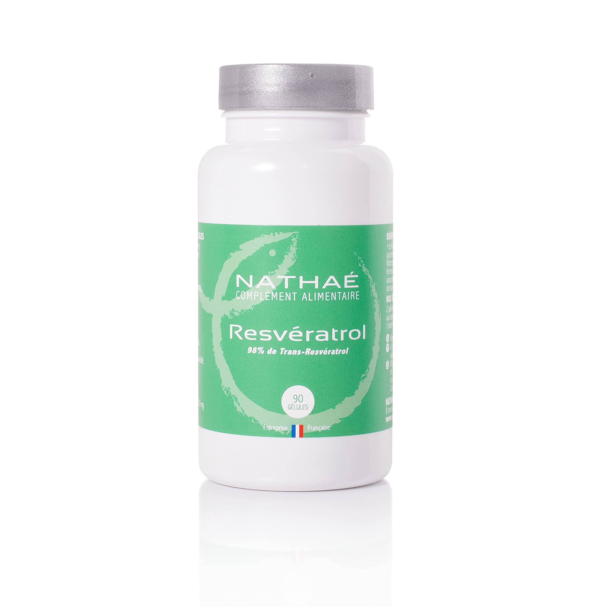 RESVERATROL: Phytonutrient with multiple properties, known for its strong antioxidant power, it is part of the polyphenol family. Resveratrol helps fight damage caused by aging and oxidative stress. OPTIMIZED FORMULA: Dry extract of polygonum cuspidatum roots titrated with 98 trans-resveratrol ensuring an optimal daily intake of 300 mg of trans-resveratrol for 2 capsules and excellent assimilation by the body. FOOD SUPPLEMENT: Dry extract of Japanese knotweed concentrated at 98 trans-resveratrol the only bioactive form. Pullulan capsule 100 plant-based and of natural origin. To date the best barrier against the oxidation of ingredients. No GMOs, no nanoparticles, no gluten, no preservatives, no chemical additives, no titanium. Suitable for vegetarians FRENCH MANUFACTURING: Our food supplements are produced in Brittany, France, in a laboratory evaluated and validated by AFNOR. Products controlled in France. NATHAÉ: Company born in 2006, in Finistère, from a passion for nutrition and the conviction that well-being requires healthy eating, as well as comprehensive care of the person. INGREDIENTS Resveratrol from a dry extract of Japanese Knotweed root (Polygonum cuspidatum), bulking agent: microcrystalline cellulose, tunic: gelling agent of plant origin, pullulan.NATHAÉ: Company founded in 2006 in Finistère, from a passion for nutrition and the belief that well-being is linked to a healthy diet and comprehensive individual care. FRENCH MADE: Our food supplements are developed in Brittany, France, in a laboratory assessed and validated by AFNOR. Products inspected in France. FOOD SUPPLEMENT: Dry extract of Japanese knotweed concentrated at 98 trans-resveratrol the only bioactive form. Pullulan capsule 100 plant-based and of natural origin. To date, the best barrier against the oxidation of ingredients. GMO-free, nanoparticle-free, gluten-free, preservative-free, chemical additive-free, titanium-free. Suitable for vegetarians. OPTIMIZED FORMULA: Dry extract of polygonum cuspidatum roots titrated at 98 trans-resveratrol ensuring an optimal daily intake of 300 mg of trans-resveratrol per 2 capsules and excellent assimilation by the body. RESVERATROL: A phytonutrient with multiple properties, known for its strong antioxidant power, it is part of the polyphenol family. Resveratrol helps fight damage caused by aging and oxidative stress. RESVERATROL : Phytonutriment aux multiples propriétés, connu pour son fort pouvoir antioxydant, il fait partie de la famille des polyphénols. Le resvératrol permet de lutter contre les dommages causés par le vieillissement et le stress oxydatif. FORMULE OPTIMISÉE : Extrait sec de racines de polygonum cuspidatum titré à 98 de trans-resvératrol assurant un apport quotidien optimal de 300 mg de trans-resvératrol pour 2 gélules et une excellente assimilation par l'organisme. COMPLÉMENT ALIMENTAIRE : Extrait sec de renouée du Japon concentré à 98 de trans-resvératrol la seule forme bioactive. Gélule de pullulane 100 végétale et d'origine naturelle. A ce jour la meilleure barrière contre l'oxydation des ingrédients. Sans OGM, sans nanoparticules, sans gluten, sans conservateur, sans additif chimique, sans titane. Convient aux végétariens FABRICATION FRANÇAISE : Nos compléments alimentaires sont élaborés en Bretagne, en France, dans un laboratoire évalué et validé par l'AFNOR. Produits contrôlés en France. NATHAÉ : Entreprise née en 2006, dans le Finistère, d'une passion pour la nutrition et de la conviction que le bien-être passe par une alimentation saine, ainsi que par une prise en charge globale de la personne. INGRÉDIENTS Resvératrol issu d'un extrait sec de racine de Renoué du Japon ( Polygonum cuspidatum), agent de charge : cellulose microcristalline, tunique: gélifiant d'origine végétale, pullulan.NATHAÉ : Entreprise née en 2006, dans le Finistère, d'une passion pour la nutrition et de la conviction que le mieux être s'accorde avec une alimentation saine, ainsi qu'une prise en charge globale de l'individu. FABRICATION FRANÇAISE : Nos compléments alimentaires sont élaborés en Bretagne, en France, dans un laboratoire évalué et validé par l'AFNOR. Produits contrôlés en France. COMPLÉMENT ALIMENTAIRE : Extrait sec de Renouée du Japon concentré à 98 de trans-resvératrol seule forme bioactive. Gélule en pullulan 100 végétale et d'origine naturelle. A ce jour la meilleure barrière contre l'oxydation des ingrédients. Sans OGM ni nanoparticules, sans gluten, sans agents conservateurs ni additifs chimiques, sans titane. Adaptées pour les végétariens. FORMULE OPTIMISÉE: Extrait sec de racines de polygonum cuspidatum titré à 98 de trans-resvératrol assurant un apport journalier optimal de 300 mg de trans-resvératrol pour 2 gélules et une excellente assimilation par l'oragnisme. RESVÉRATROL : Phytonutriment aux multiples propriétés, connu pour son fort pouvoir antioxydant, il fait partie de la famille des polyphénols. Le resvératrol aide à lutter contre les dommages causés par le vieillissement et le stress oxydatif.