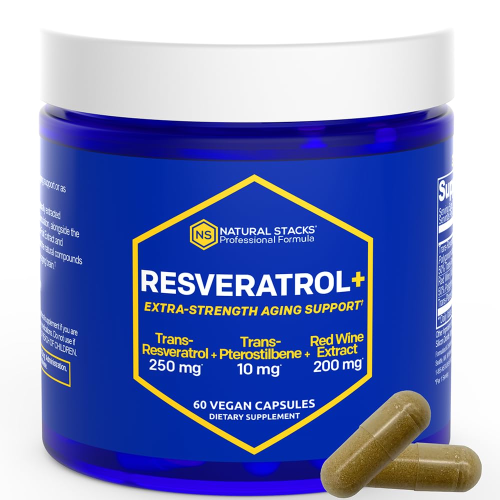 BETTER BRAIN, BETTER LIFE: Natural Stacks goes beyond the standard brain supplement requirements to assure customers of our commitment to transparency. Everything we do is open-source. We test for purity and quality, and share the results with you for every single batch of our Resveratrol. QUALITY SUPPLEMENTS YOU CAN TRUST: Our brain supplement with Resveratrol is vegan-friendly and is manufactured in the United States with globally sourced ingredients. Each bottle of our Resveratrol is a 2 month supply. TRANS-PTEROSTILBENE IN RESVERATROL NUTRITIONAL SUPPLEMENTS: The compounds in Pterostilbene, a key component of Resveratrol , are indicated to have a positive impact on supporting an aging brain, highlighting its beneficial influence . BRAIN-BOOSTING SUPPORT: Benefit from the cognitive advantages of Trans-Pterostilbene, a compound renowned for its ability to boost mental clarity and cognitive function . Resveratrol incorporates this vital element to support brain health . ADVANCED RESVERATROL BLEND: Our Resveratrol supplement features a blend of ingredients containing 250 mg of extracted Resveratrol sourced from Japanese Knotweed. This unique formula is designed to support blood flow within the brain .