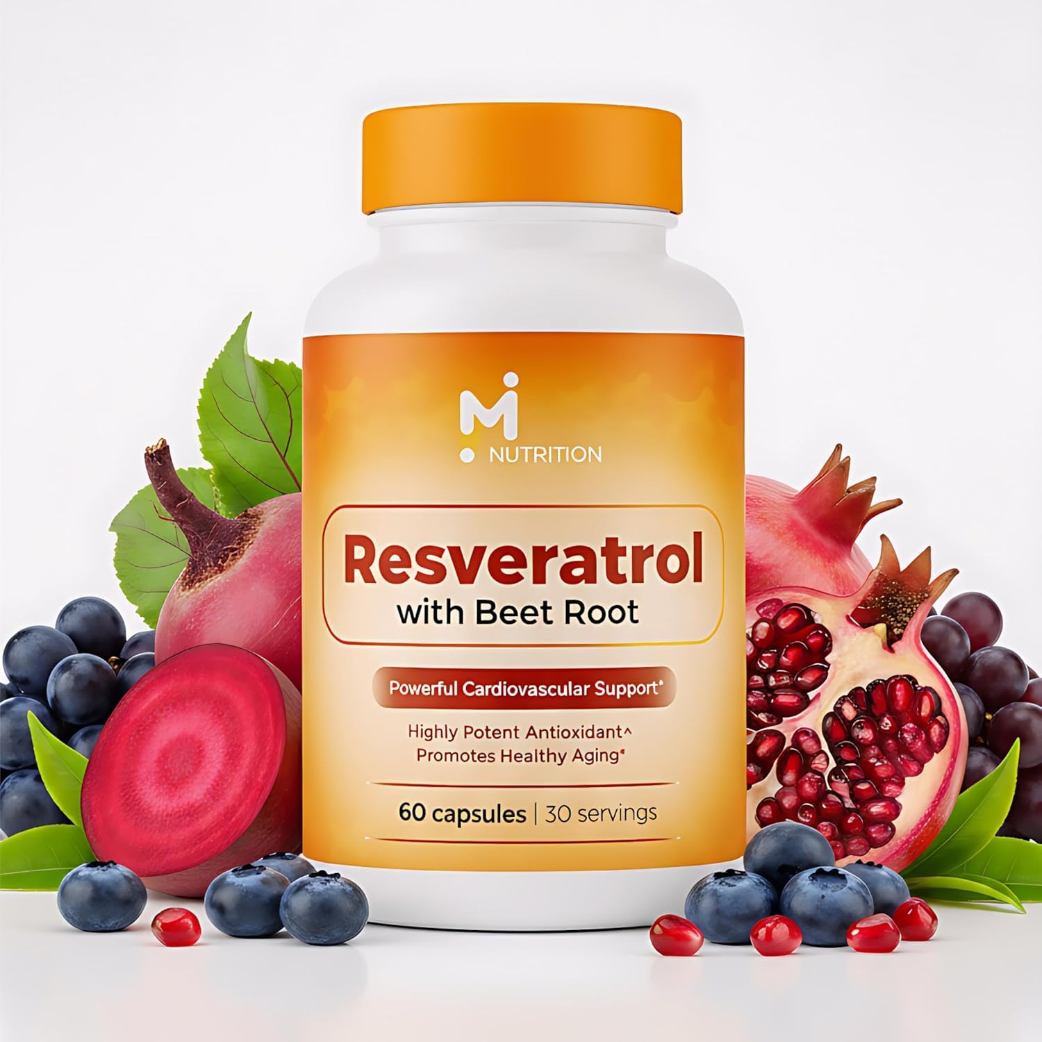 Tested Quality Assurance: This resveratrol supplement is manufactured in the USA in an FDA-registered, GMP-certified facility using third-party tested ingredients. These resveratrol capsules ensure exceptional purity, consistent potency, and product safety you can trust for reliable daily performance. Daily Wellness Ease: Lightweight and easy to take, this super fruit supplement supports daily heart health, antioxidant protection, immune balance, and natural vitality formulated with a clean blend free from artificial colors, flavors, or unnecessary fillers. Anti-Aging Defense: Beetroot capsules with a resveratrol complex help combat free radicals that contribute to visible aging. This beetroot supplement supports collagen integrity, skin tone, flexibility, and mental clarity so you stay active, focused, and confident each day. Heart Circulation Support: Trans resveratrol works with Grape Seed Extract, Green Tea, and Pomegranate from a 448 mg polyphenol complex to support healthy circulation and vascular flexibility. These beet root capsules for blood pressure help maintain cardiovascular strength and daily endurance. Advanced Resveratrol Formula: Features 110 mg of 98 pure Resveratrol blended with 336 mg of Beet Root and 110 mg of Vitamin C to strengthen the body's antioxidant defense helping protect cells from oxidative stress while supporting immune function and steady energy.
