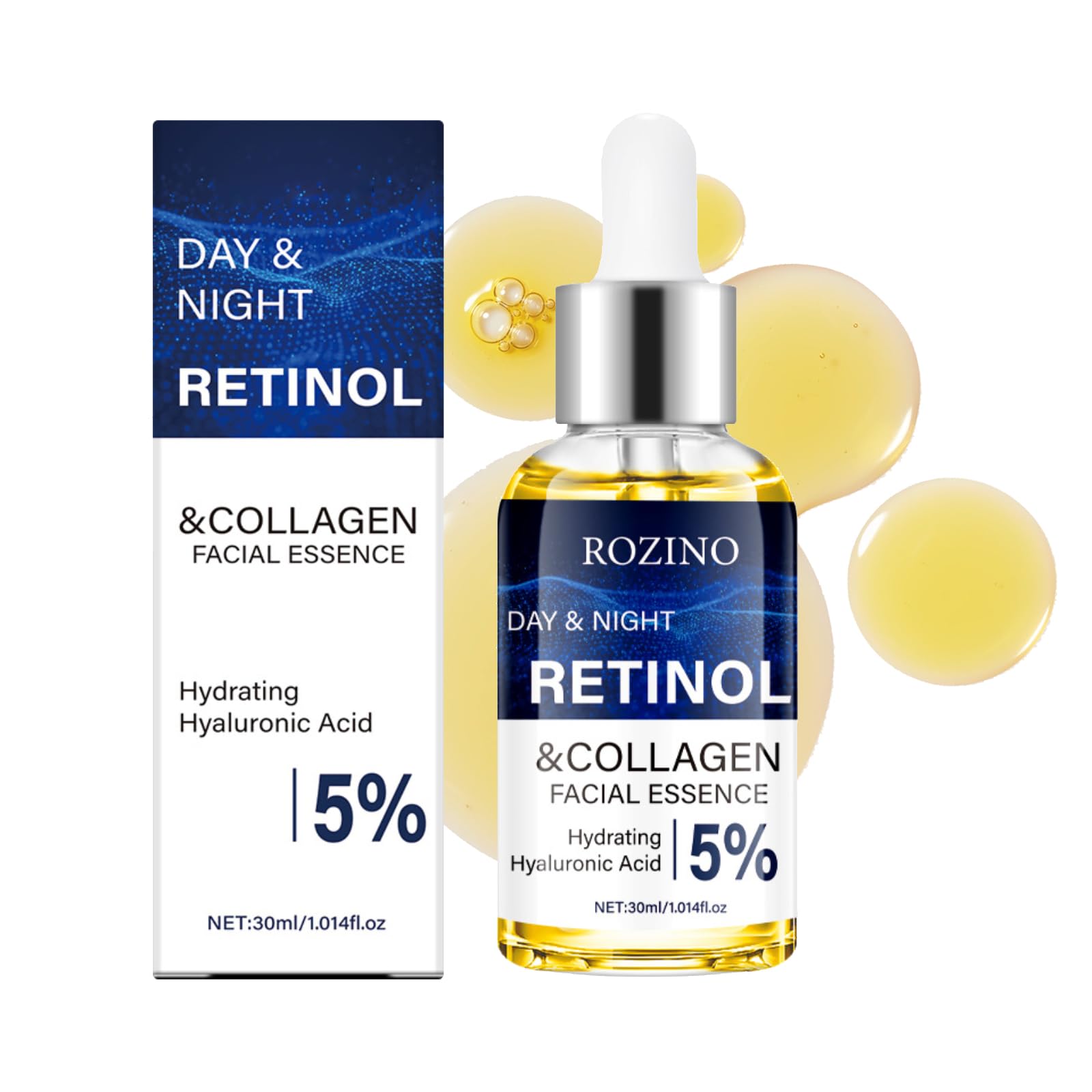 GENTLE FORMULATION: Non-greasy, fast-absorbing essence suitable for all skin types, free from alcohol and sulfates. PRECISE DISPENSING: Includes dropper applicator for controlled application of the 30ml 1.014 fl oz concentrated serum. ADVANCED HYDRATION: 5 hyaluronic acid concentration helps lock in moisture and plump skin for a more youthful appearance. DAY NIGHT USE: Versatile facial essence designed for both daytime and nighttime application, providing continuous hydration and skin improvement. POWERFUL FORMULA: Contains retinol, collagen, and 5 hyaluronic acid complex for comprehensive skin rejuvenation and anti-aging benefits.