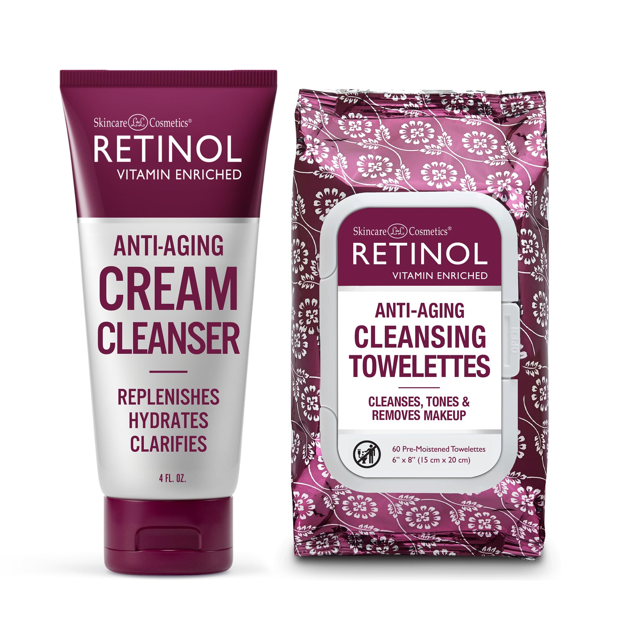 Retinol Anti-Aging Cream Cleanser Daily Deep Cleansing Facial Wash Exfoliates & Moisturizes All in One Anti-Aging Cleansing Towelettes