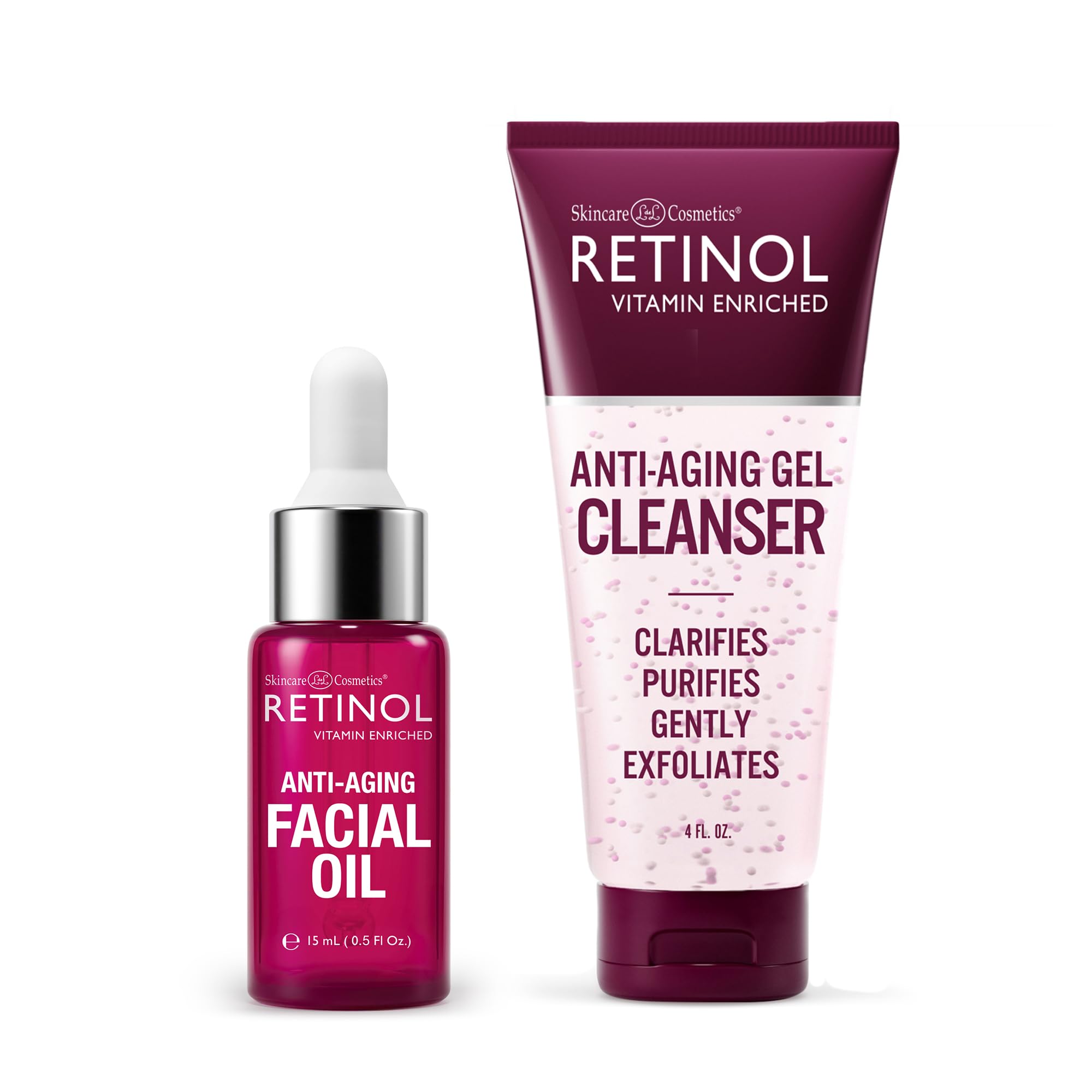Retinol Anti-Aging Facial Oil With Nine Essential Oils Restores Hydration and Nourishment Anti-Aging Gel Cleanser - Gently Cleans Impurities From Pores & Exfoliates for Soft Smooth Skin