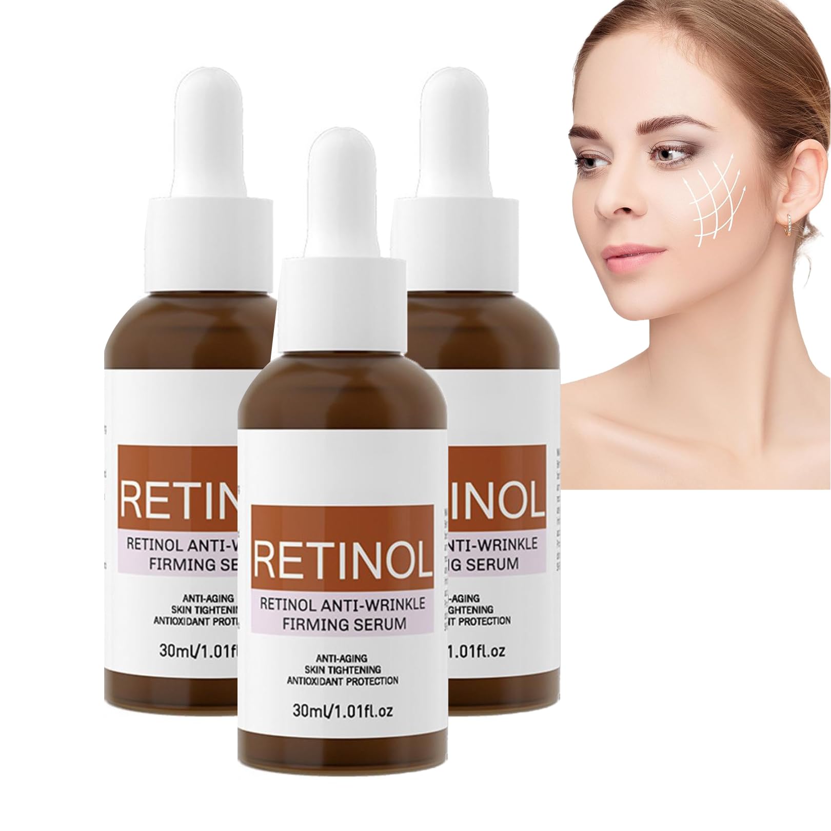 Retinol Anti-Wrinkle Facial Serum Concentrate Improves Skin's Elasticity Tone and Minimizes Appearance of Fine Lines Wrinkles – Look Younger With The Age-Defying Power Of Retinol Advanced Retinol Formula: Our serum features a high concentration of retinol, known for its powerful anti-aging properties. It helps to reduce the appearance of fine lines and wrinkles, promoting a more youthful complexion. Firming and Lifting: This serum is designed to improve skin elasticity and firmness, providing a lifting effect that helps to contour and redefine facial features for a more toned and sculpted look. Hydrating and Nourishing: Infused with hydrating ingredients, our retinol serum deeply moisturizes the skin, preventing dryness and flakiness while nourishing the skin for a smoother and softer texture. Brightening and Even Skin Tone: Retinol works to accelerate skin cell turnover, reducing dark spots and hyperpigmentation. This results in a brighter, more even skin tone and a radiant glow. Suitable for All Skin Types: Formulated to be gentle yet effective, this serum is suitable for all skin types, including sensitive skin. SAFETY WARNING noSuitable for All Skin Types: Formulated to be gentle yet effective, this serum is suitable for all skin types, including sensitive skin. Brightening and Even Skin Tone: Retinol works to accelerate skin cell turnover, reducing dark spots and hyperpigmentation. This results in a brighter, more even skin tone and a radiant glow. Hydrating and Nourishing: Infused with hydrating ingredients, our retinol serum deeply moisturizes the skin, preventing dryness and flakiness while nourishing the skin for a smoother and softer texture. Firming and Lifting: This serum is designed to improve skin elasticity and firmness, providing a lifting effect that helps to contour and redefine facial features for a more toned and sculpted look. Advanced Retinol Formula: Our serum features a high concentration of retinol, known for its powerful anti-aging properties. It helps to reduce the appearance of fine lines and wrinkles, promoting a more youthful complexion. Retinol Anti-Wrinkle Facial Serum Concentrate Improves Skin's Elasticity Tone and Minimizes Appearance of Fine Lines Wrinkles – Look Younger With The Age-Defying Power Of Retinol Advanced Retinol Formula: Our serum features a high concentration of retinol, known for its powerful anti-aging properties. It helps to reduce the appearance of fine lines and wrinkles, promoting a more youthful complexion. Firming and Lifting: This serum is designed to improve skin elasticity and firmness, providing a lifting effect that helps to contour and redefine facial features for a more toned and sculpted look. Hydrating and Nourishing: Infused with hydrating ingredients, our retinol serum deeply moisturizes the skin, preventing dryness and flakiness while nourishing the skin for a smoother and softer texture. Brightening and Even Skin Tone: Retinol works to accelerate skin cell turnover, reducing dark spots and hyperpigmentation. This results in a brighter, more even skin tone and a radiant glow. Suitable for All Skin Types: Formulated to be gentle yet effective, this serum is suitable for all skin types, including sensitive skin. AVERTISSEMENT DE SÛRETÉ noSuitable for All Skin Types: Formulated to be gentle yet effective, this serum is suitable for all skin types, including sensitive skin. Brightening and Even Skin Tone: Retinol works to accelerate skin cell turnover, reducing dark spots and hyperpigmentation. This results in a brighter, more even skin tone and a radiant glow. Hydrating and Nourishing: Infused with hydrating ingredients, our retinol serum deeply moisturizes the skin, preventing dryness and flakiness while nourishing the skin for a smoother and softer texture. Firming and Lifting: This serum is designed to improve skin elasticity and firmness, providing a lifting effect that helps to contour and redefine facial features for a more toned and sculpted look. Advanced Retinol Formula: Our serum features a high concentration of retinol, known for its powerful anti-aging properties. It helps to reduce the appearance of fine lines and wrinkles, promoting a more youthful complexion.