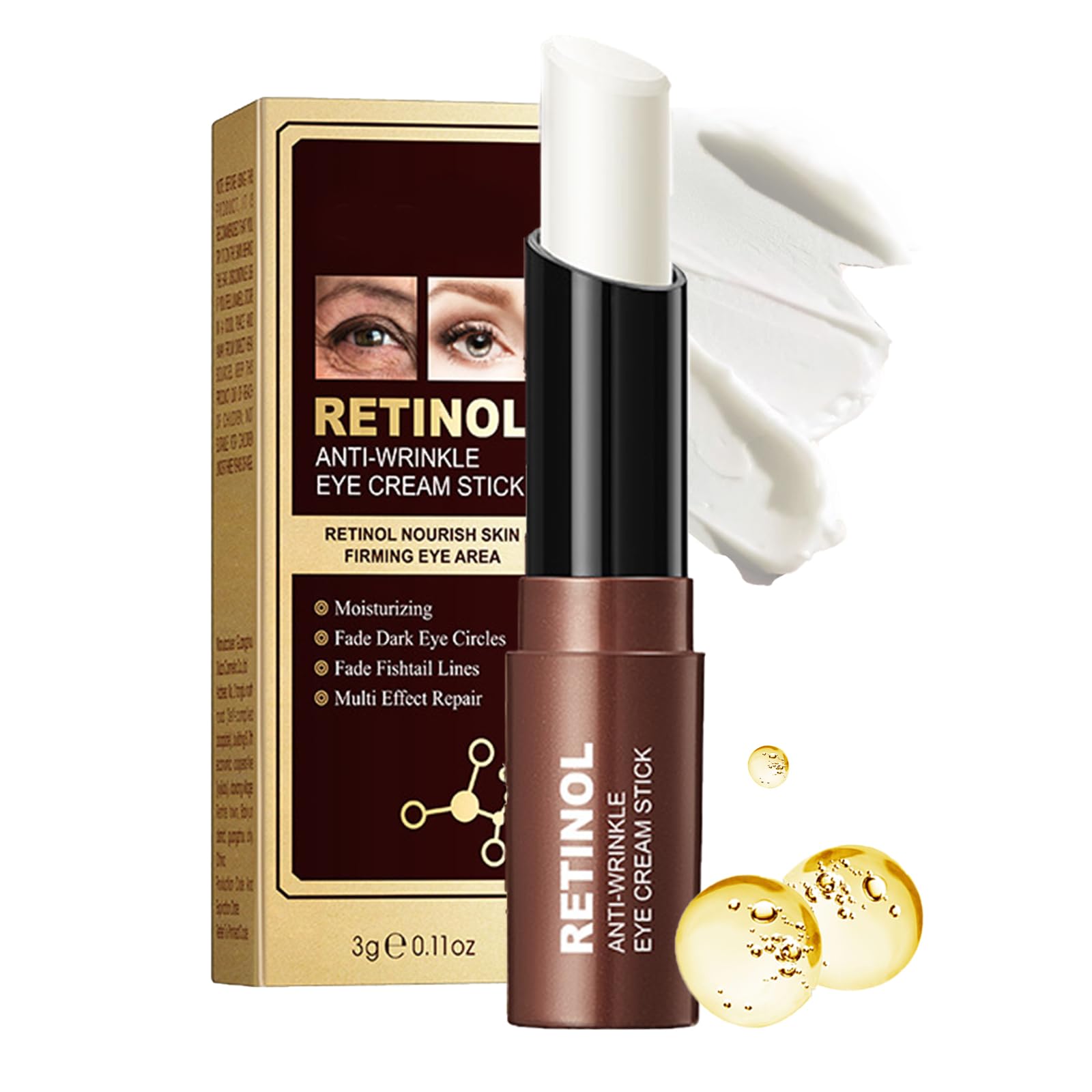 REVITALIZE YOUR EYES WITH OUR INNOVATIVE RETINOL STICK, SPECIALLY FORMULATED TO COMBAT DARK CIRCLES AND FINE LINES. THIS POWERFUL YET GENTLE FORMULA WORKS WONDERS TO REDUCE PUFFINESS AROUND THE EYE AREA, GIVING YOU A REFRESHED AND YOUTHFUL APPEARANCE. DESIGNED FOR SUPERIOR EFFICACY, OUR ANTI AGING RETINOL EYE CREAMSTICK GLIDES ON SMOOTHLY, PROVIDING TARGETED TREATMENT WHERE YOU NEED IT MOST. THE CONVENIENT STICK FORMAT MAKES APPLICATION EASY AND MESS-FREE, ALLOWING YOU TO INCORPORATE IT EFFORTLESSLY INTO YOUR DAILY SKINCARE ROUTINE. SAY GOODBYE TO TIRED-LOOKING EYES AND HELLO TO A BRIGHTER, MORE VIBRANT GAZE. WITH CONSISTENT USE, WATCH AS THE SIGNS OF AGING DIMINISH, REVEALING SMOOTHER, FIRMER SKIN AROUND YOUR EYES. EXPERIENCE THE TRANSFORMATIVE POWER OF OUR RETINOL EYE STICK—YOUR SECRET WEAPON AGAINST DARK CIRCLES, FINE LINES, AND PUFFINESS! SPECIFICATION NAME: RETINOL EYE STICK PRODUCT DIMENSIONS : 1.1 X 0.9 X 2.7 INCH NET CONTENT : 3 G SHELF LIFE: 3 YEARS