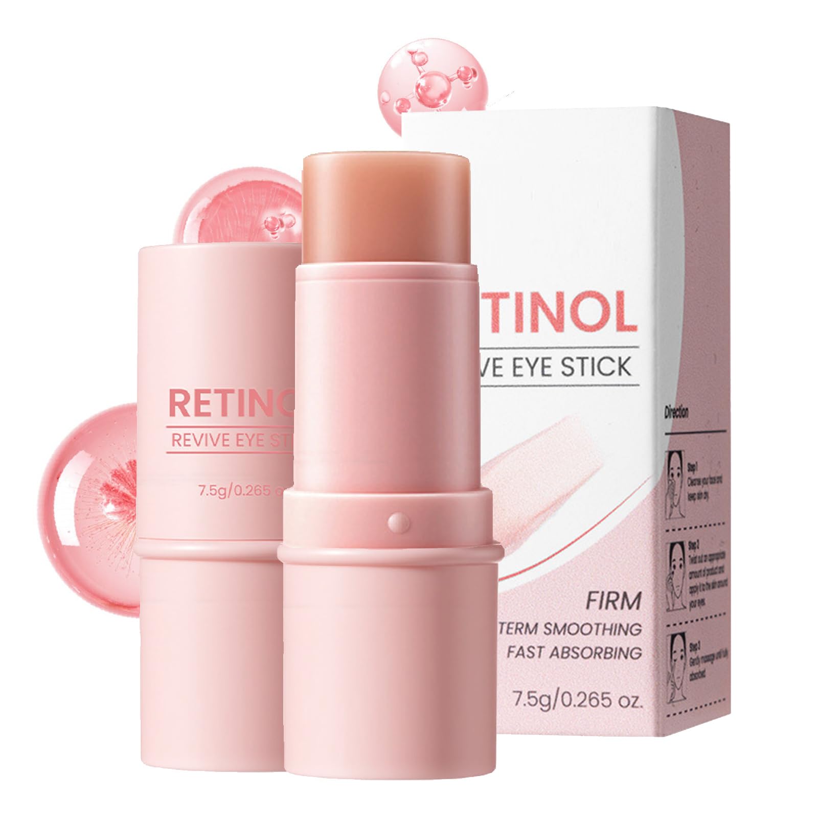 PORTABLE AND EASY TO USE: The stick design offers convenience for busy lifestyles. Apply effortlessly with quick absorption—a travel essential to keep your eyes looking their best anytime, anywhere. FIRMING UNDER-EYE SKIN:Consistent use of our multi-action eye cream enhances skin elasticity, reducing sagging around the eyes. Paired with the massager's gentle pressure, it further tightens and lifts the delicate eye area. TARGETS VISIBLE EYE CONCERNS:Retinol essence effectively improves dark circles and dullness while smoothing fine lines under the eyes. It also offers anti-aging benefits, keeping your age a secret. DEEP HYDRATION: This moisturizing eye cream is specially formulated for the delicate skin around the eyes. Enriched with hydrating ingredients like collagen, it effectively nourishes fragile eye area skin while providing long-lasting moisture for soft, supple skin. RETINOL ACTIVATING FORMULA: Experience the powerful benefits of retinol! Our retinol eye cream stick contains retinol and is infused with a nourishing blend of caffeine and collagen. These ingredients work synergistically to effectively reduce dark circles and dullness while restoring skin's natural elasticity for a more youthful-looking eye area.