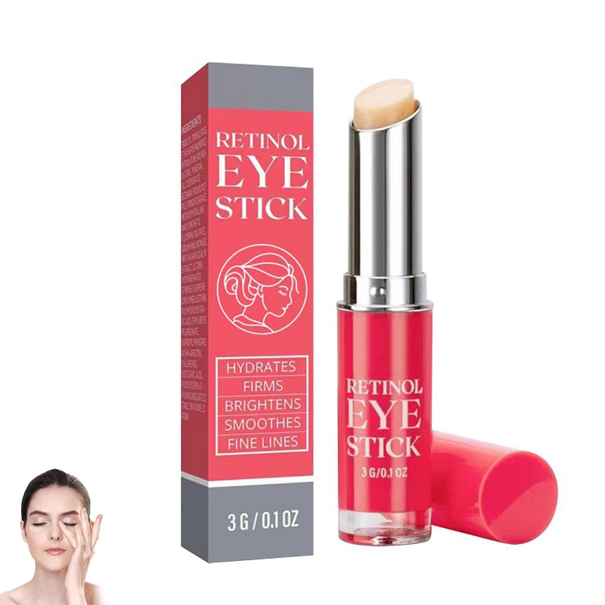 Warming Tips : We recommend you try once per 2-3 days to allow your skin to adjust to the retinol in the beginning, after 2-4 weeks you may apply once daily at night. Convenient Stick To Use : The easy-to-use stick applicator allows for precise, application directly to the eye area. After your nightly cleanses, glide the retinol eye stick around your entire eye area in small, circular motions. Hydrating Formula : The eye cream is enriched with hydrating ingredients that help to lock in moisture, improve firmness and tone, and make your under-eye skin look plump. Effective Ingredients : Retinol, vegan squalane, and astaxanthin target signs of aging for a more youthful appearance. Under eye cream stick would gain peace for your eyes and confidence for you through beauty. Attention : Please use with caution on sensitive skin. Before use, be sure to try a small area behind the ear or the inside of the wrist, wait 4 - 8 hours, observe whether there is redness, swelling, itching and other discomforts, no abnormality before normal use. Product Efficacy and Benefits : Retinol eye stick is designed to rejuvenate the eye. Hydrating rretinol eye stick relieves common eye concerns such as dark circles, puffiness, fine lines.