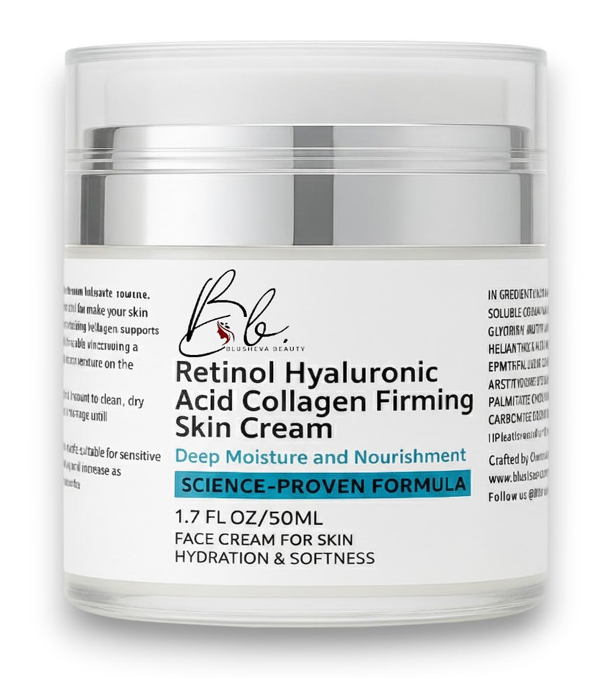 Clean, Gentle Suitable for All Skin Types - Free from parabens, sulfates, and added fragrance. Cruelty-free and suitable for sensitive, dry, mature, and combination skin. Lightweight, Fast-Absorbing Formula - Silky, non-greasy texture absorbs quickly without clogging pores. Ideal for day or night use, alone or under makeup. Deep Hydration with Hyaluronic Acid - Hyaluronic acid, glycerin, and shea butter deliver long-lasting moisture to relieve dryness, soften skin, and maintain a healthy, plump appearance. Firms Plumps with Collagen Support - Soluble collagen and skin-supporting botanicals help improve elasticity, leaving skin feeling firmer, smoother, and more youthful on the face and neck. Gentle Retinol Alternative for Smoother Skin - Formulated with Retinyl Palmitate, a mild vitamin A derivative, this face cream helps improve the appearance of fine lines and uneven texture while remaining gentle enough for daily use.