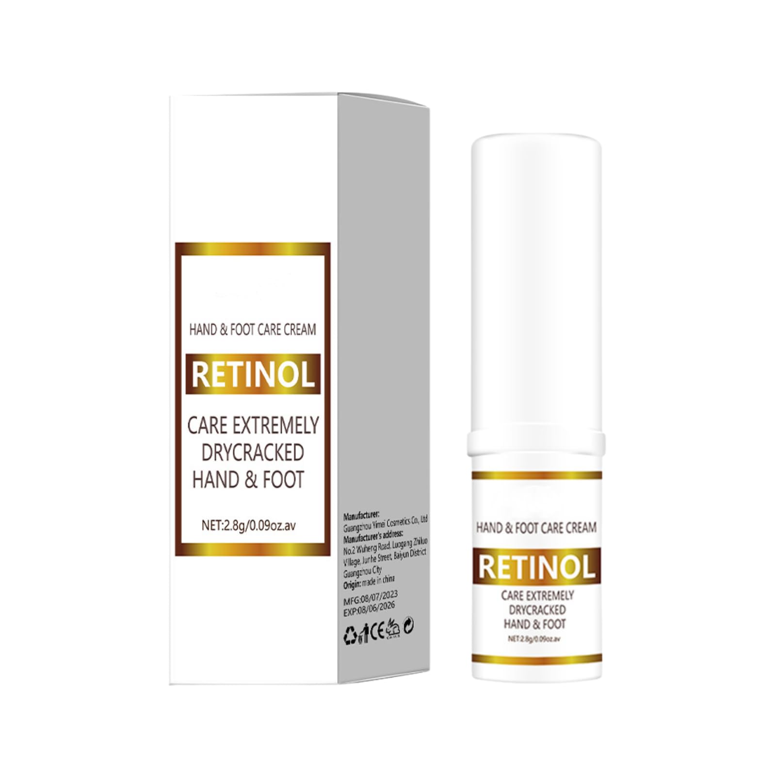 RETINOL HAND & FOOT CARE CREAM is a concentrated moisturizer that relieves, and repairs extremely dry, cracked feet. When your hardworking hands & feet need hardworking skin care, that's a job for RETINOL FOOT CARE CREAM. Features: ?Deeply Moisturizing your feet and rehydratesskin to a healthy appearance. ?Effectively removes painful calluses, rapidly. ?Improving softness, increase circulation andpreventing water loss. ?Gently exfoliates dead skin and promote newcell growth. ?Refreshing your skin and giving it a naturaland pleasant fragrance. Let's use this foot cream for cracked heels and dry skin every day to get a beautiful pair of feet !!!! Instructions: It is for external use only. Keep out of reach of children. Please perform a ear skin test before use. Seek professional suggestion if allergy or irritation occurs. Store in a dry and cool place, avoid direct sunlight and keep away from any high temperature. SPECIFICATION Product Name: RETINOL HAND & FOOT CARE CREAM Net Content: 2.8g/ 0.09 oz.av Shelf Life: 3 Years Skin Types: Suitable for All Skin Types Storage Method: In a Cool and Ventilated Place SAFETY WARNING For external use only. Avoid contact with eyes. Keep away from naked flame or direct heat sources.