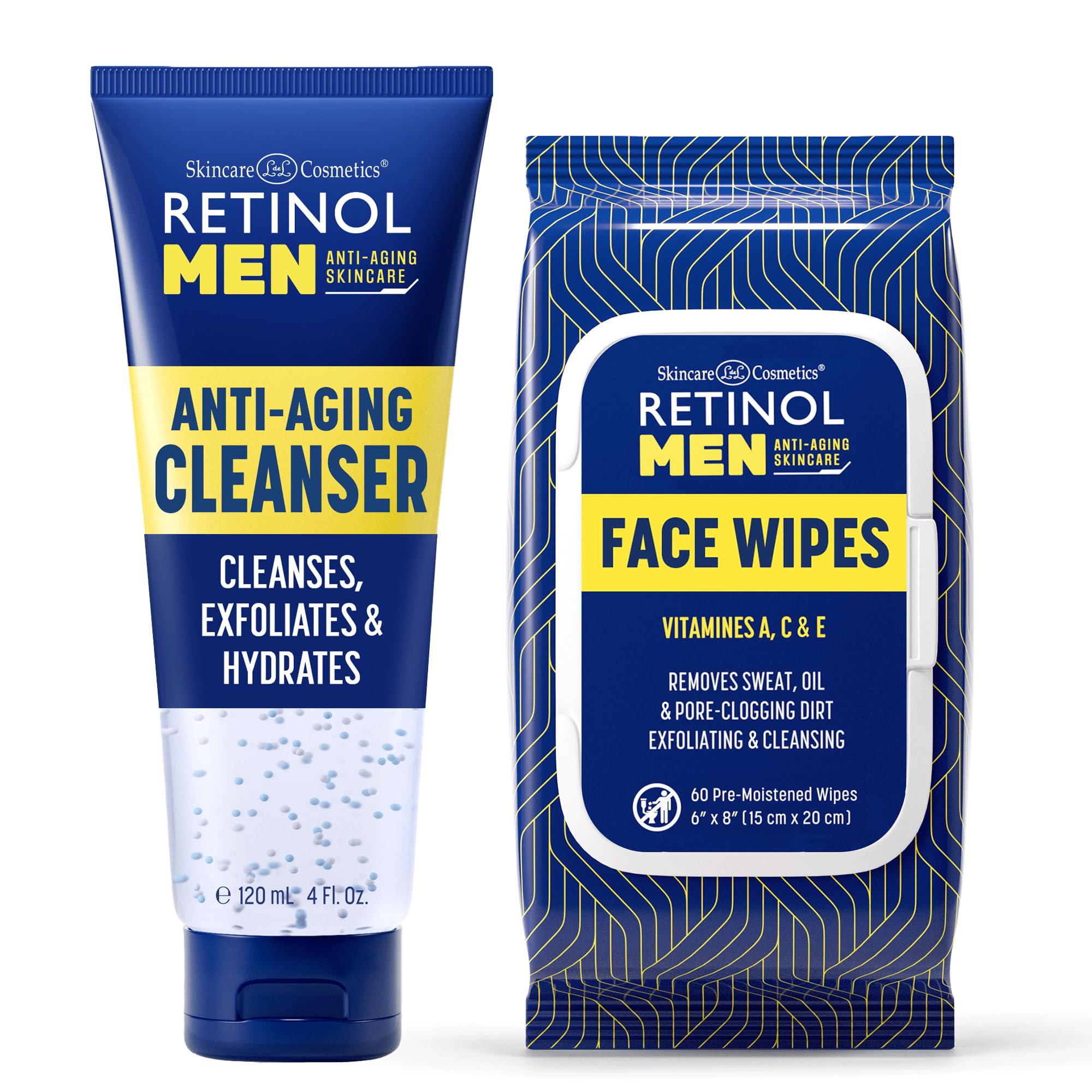 Retinol Men's Gel Cleanser Gently Exfoliates skin for Improved Texture Men Anti- Aging Facial Wipes - Quickly cleanses Face from sweat oil and pore-clogging dirt without any heavy residue