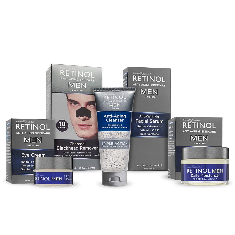 Retinol Mens gift set - Includes Daily Moisturizer Eye Cream Facial Serum Gel Cleanser and Blackhead Remover